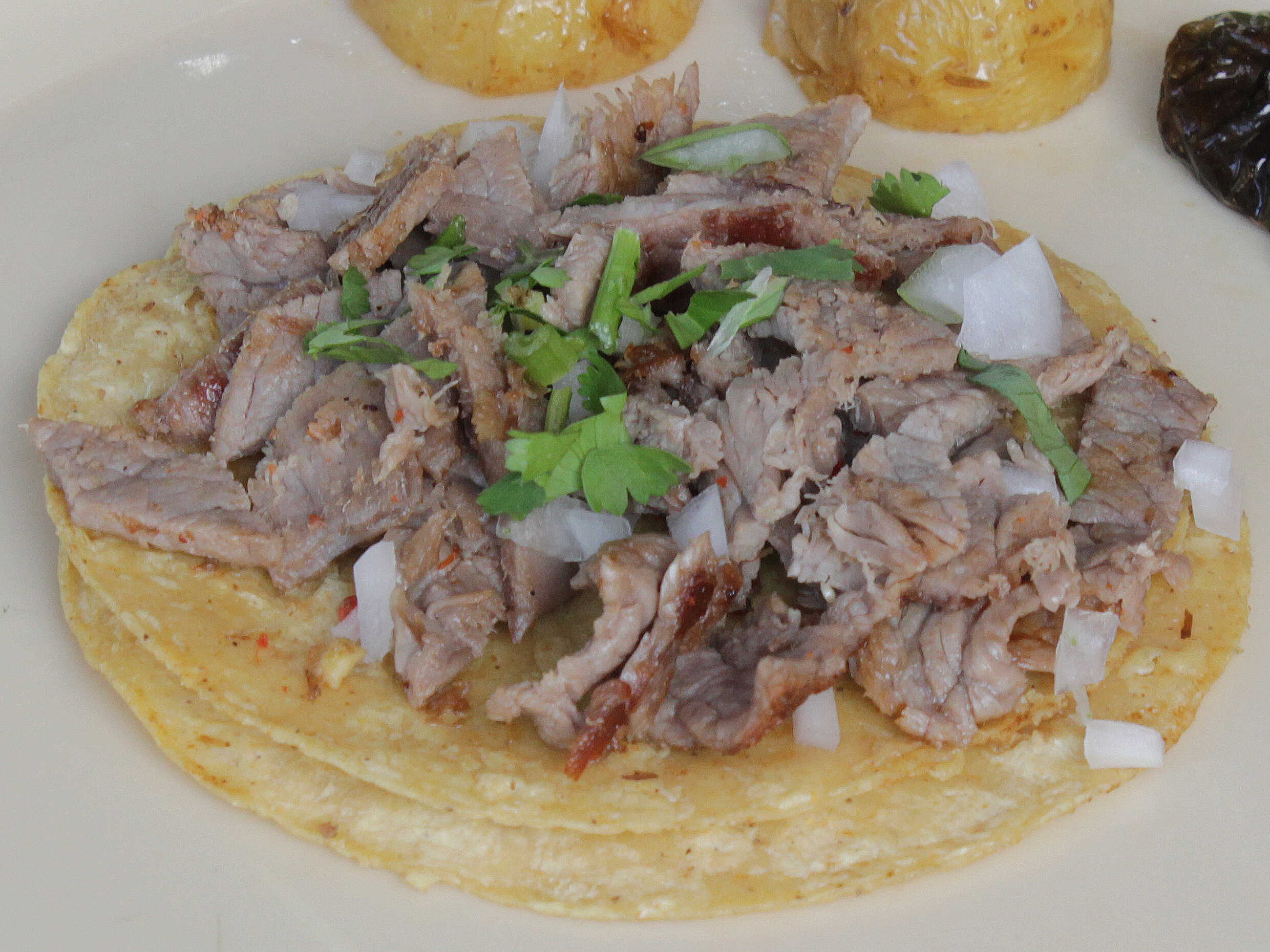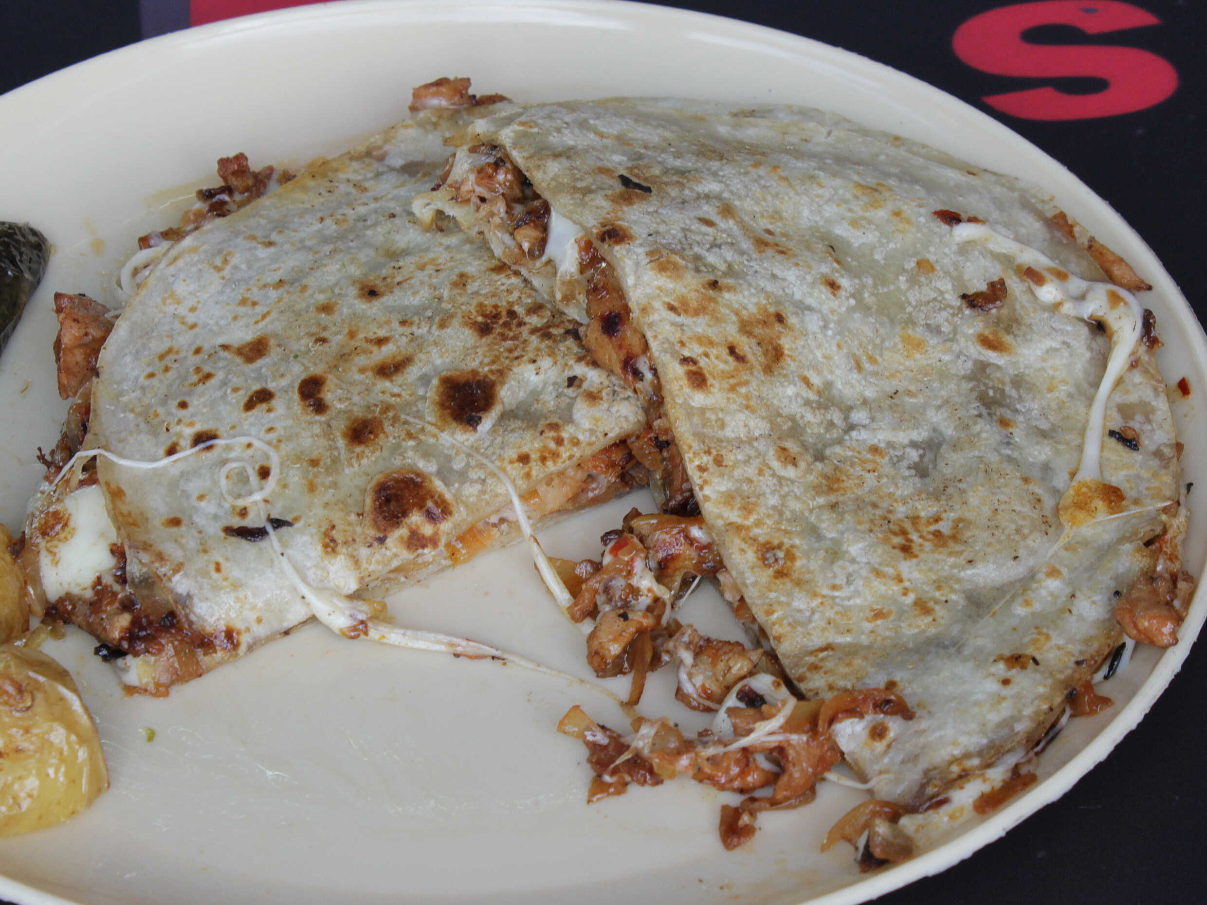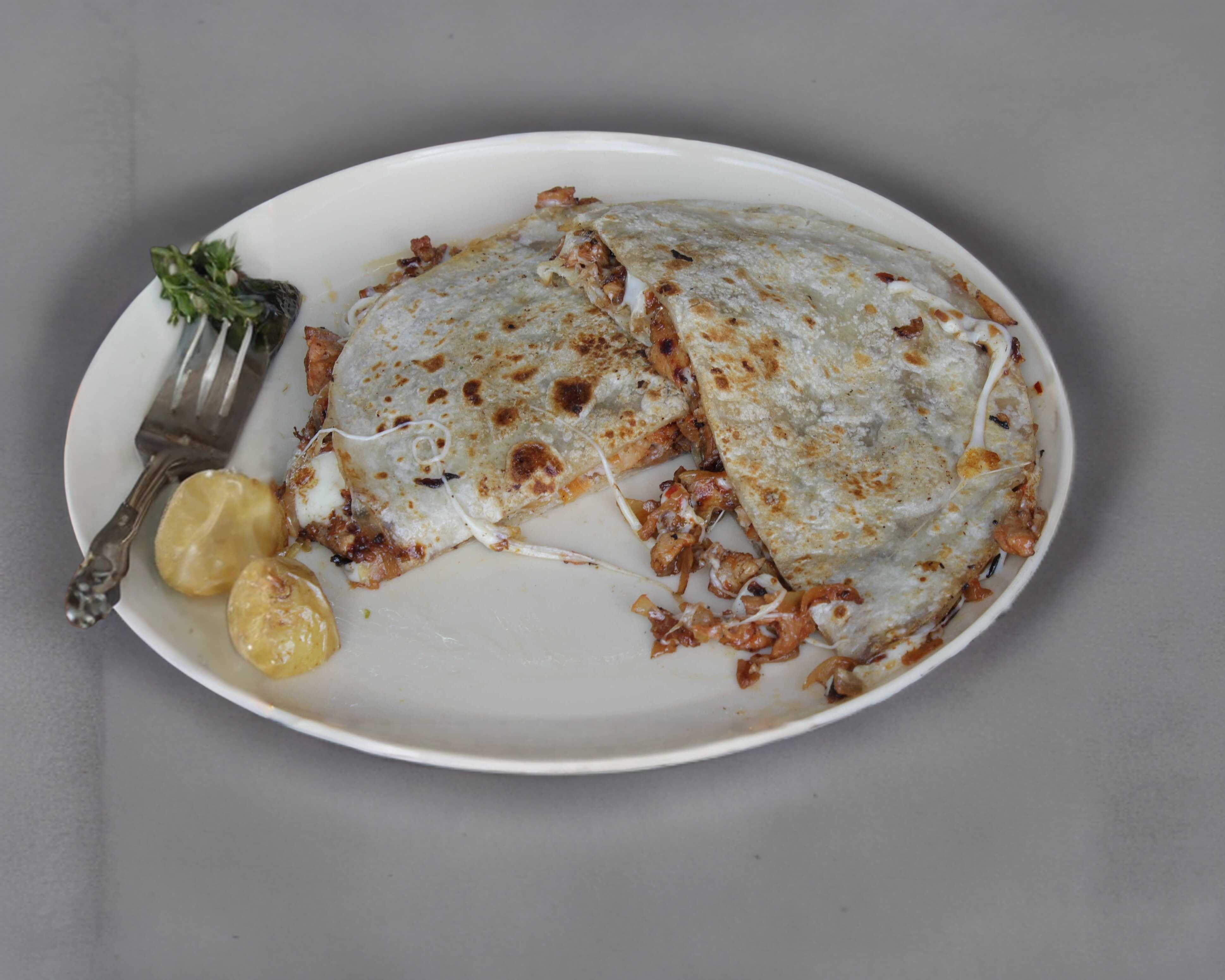 1 tortilla de harina de mesa con queso asadero y carne a su gusto doblada a la mitad