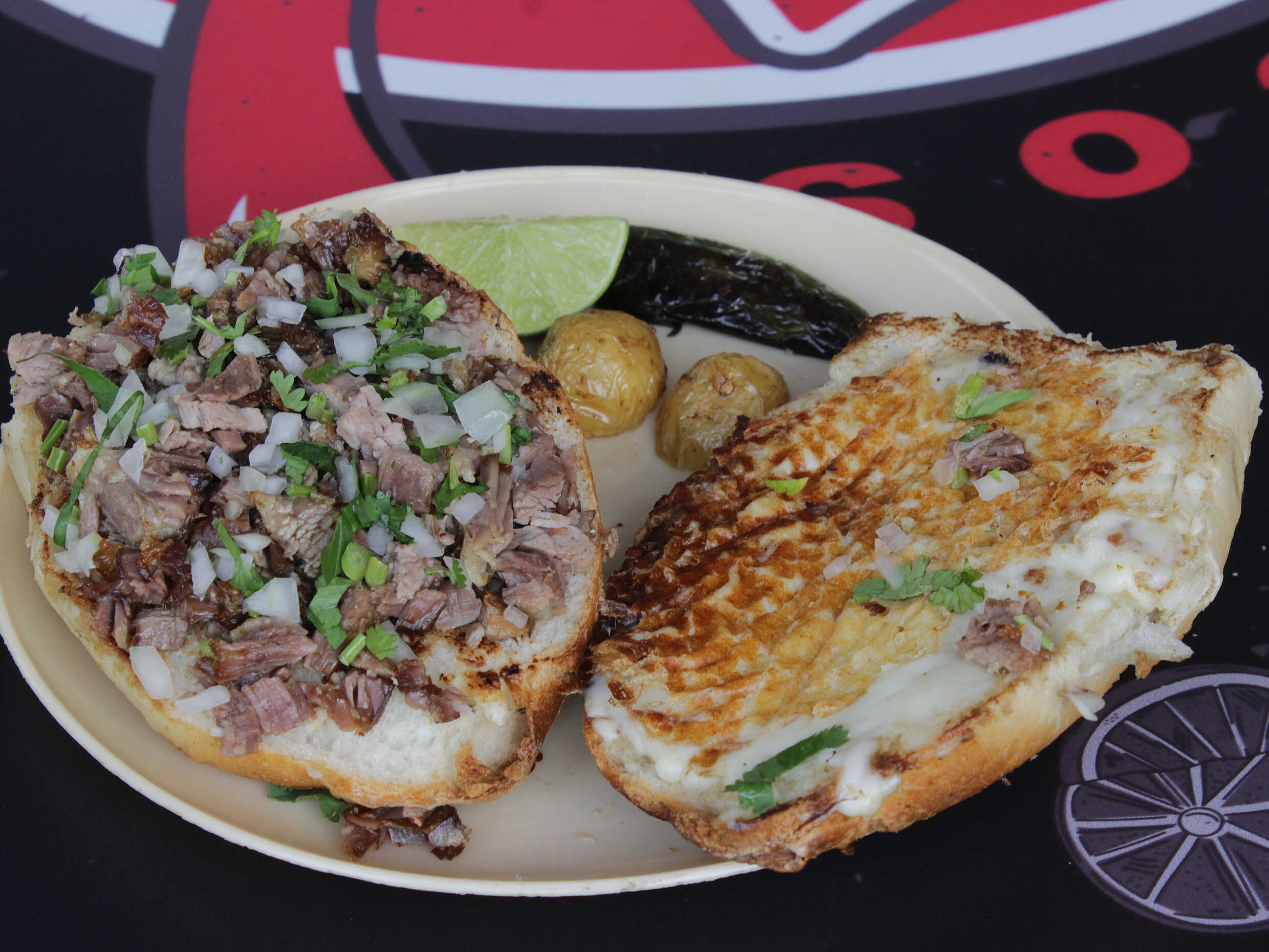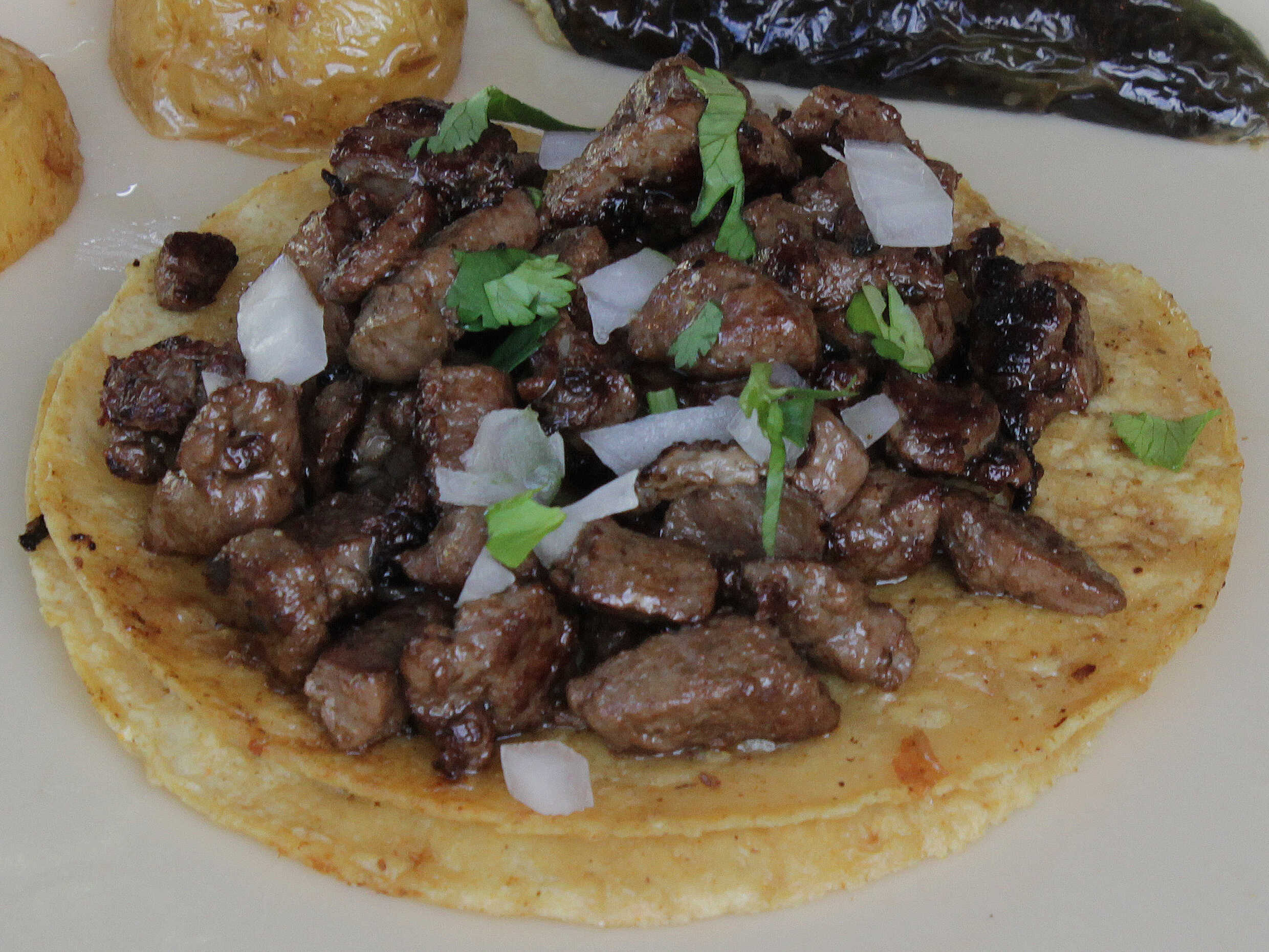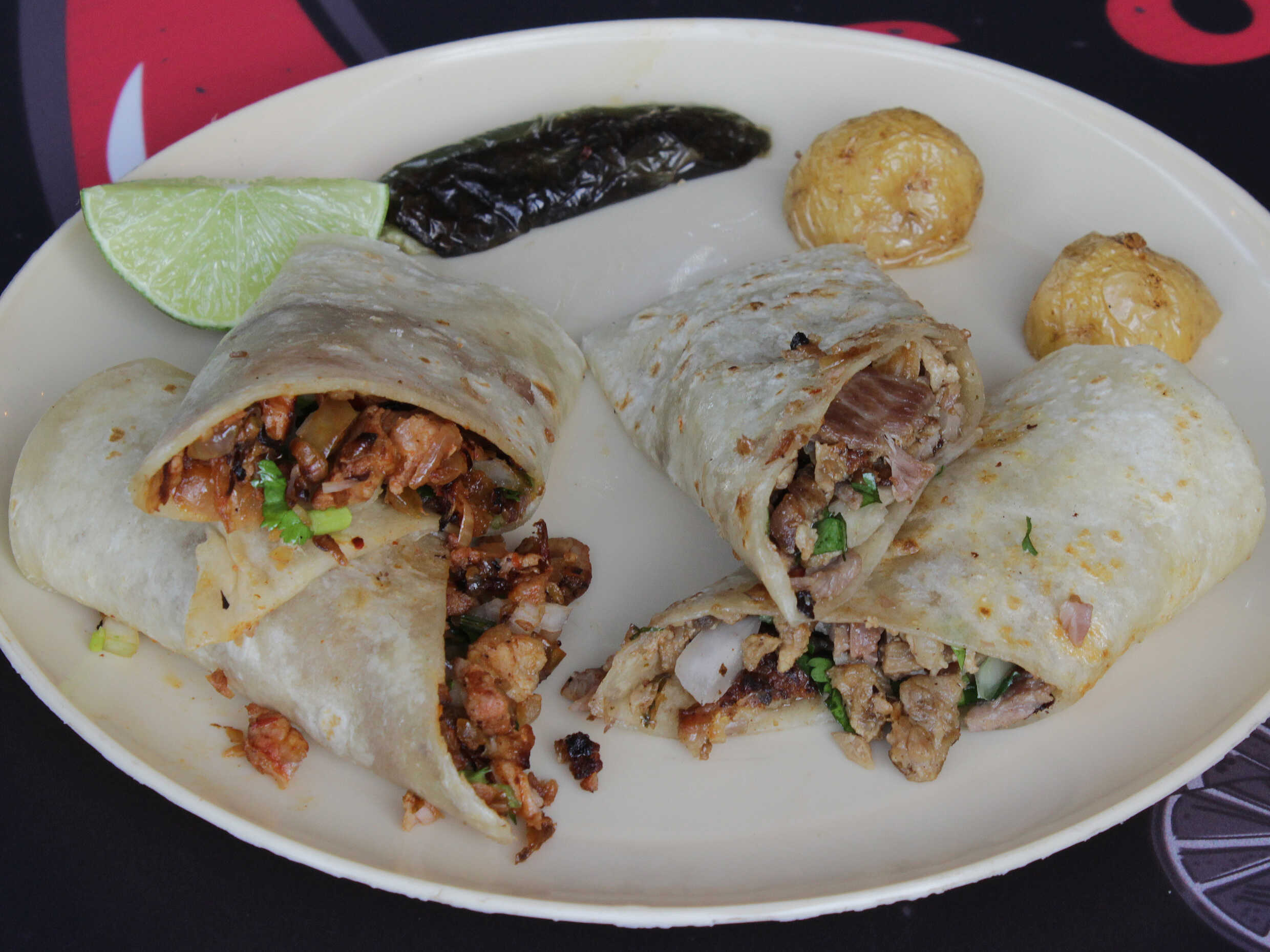 1 tortilla de harina de mesa con queso asadero y carne a su gusto doblada a la mitad