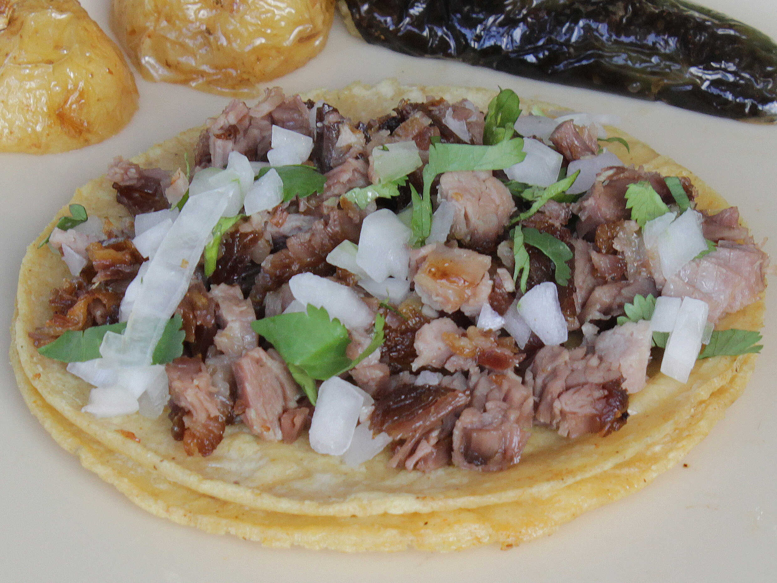Tortilla chica y carne de sudadero.