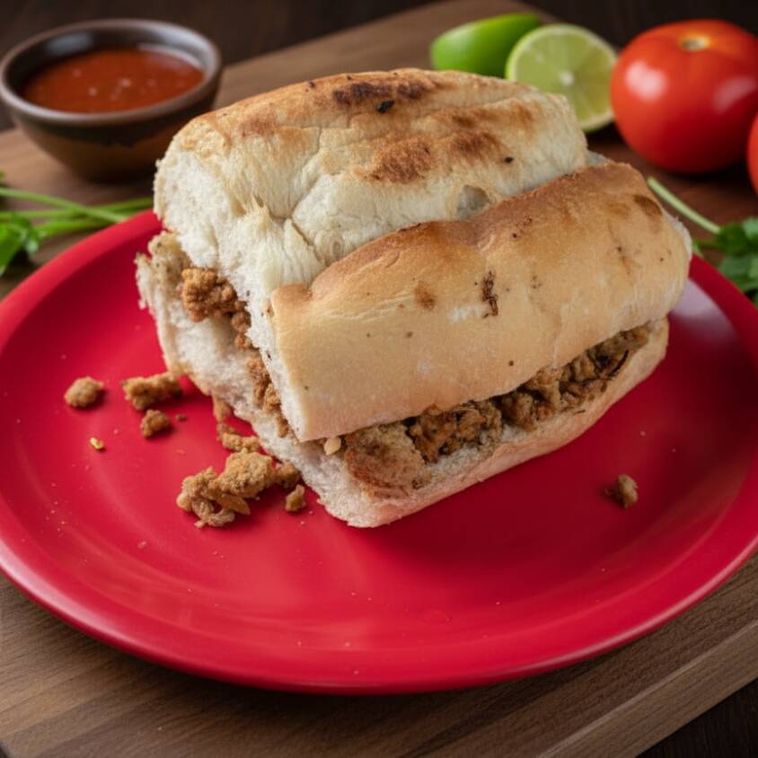 Torta con pastor doradito, cebolla guisada y verduras frescas. Mucho sabor en cada bocado.