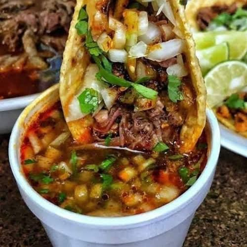 Tradicional taco de barbacoa servido en tortilla suave y calientita, con carne tierna y jugosa llena de sabor auténtico.