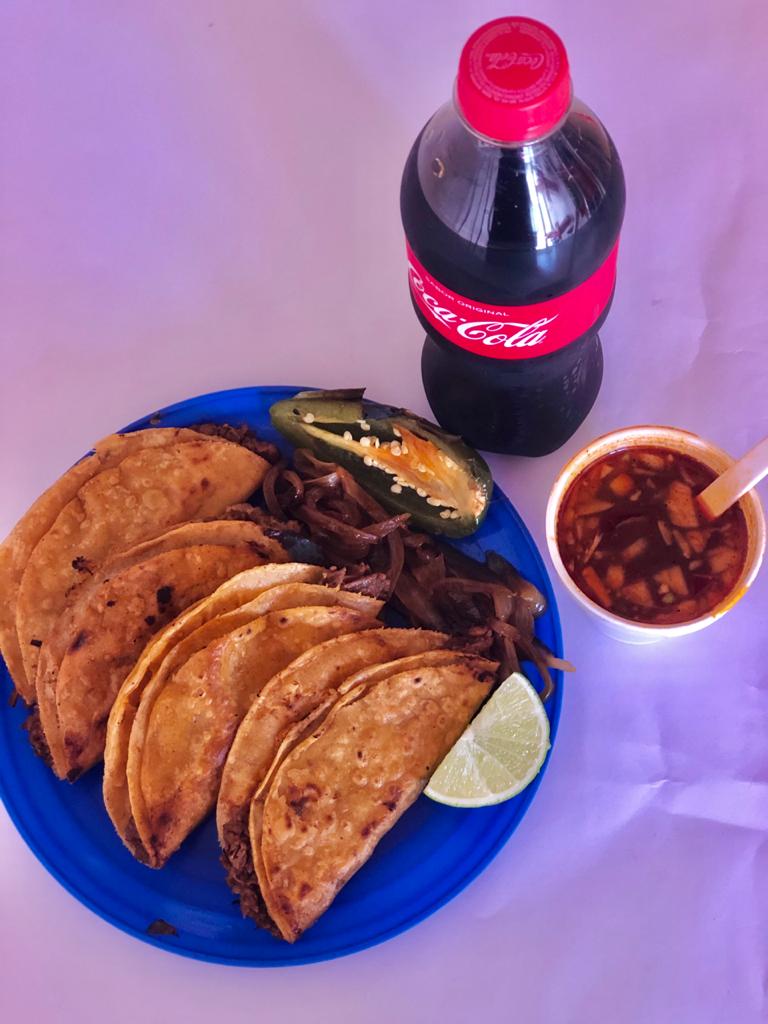 4 tacos dorados con verduras por aparte + Coca-Cola 600 ml (promoción).