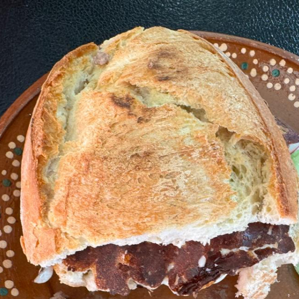 Deliciosa arrachera con queso en un bolillo doradito a la plancha, acompañado deliciosos complementos a elegir. Selecciona tu la salsa favorita.