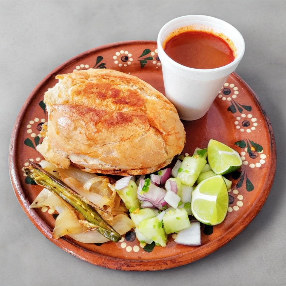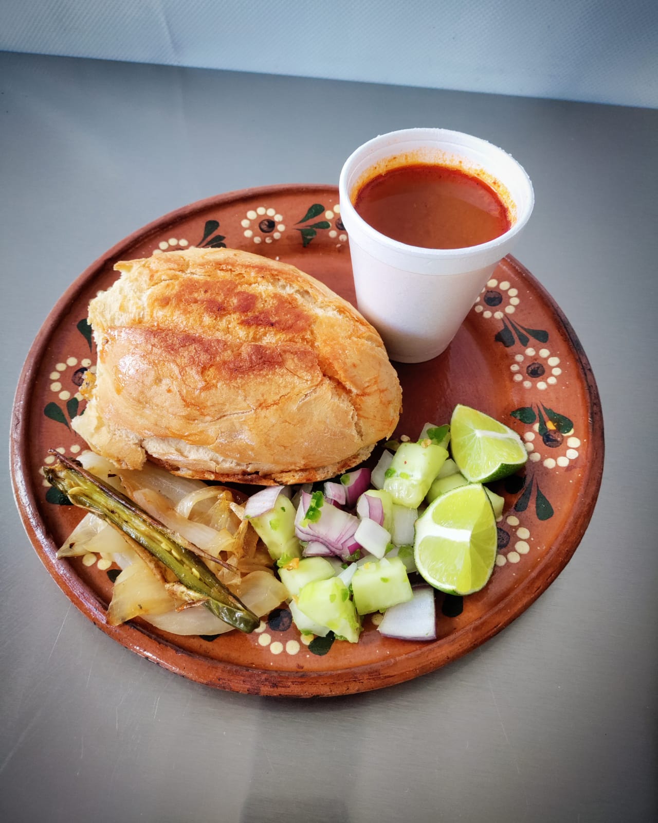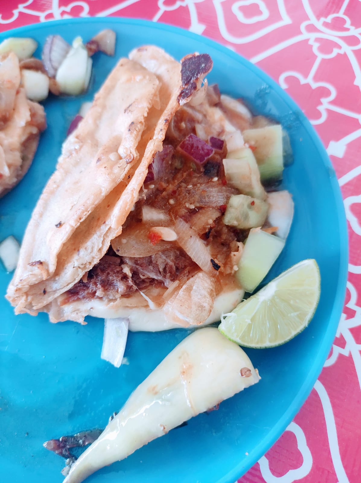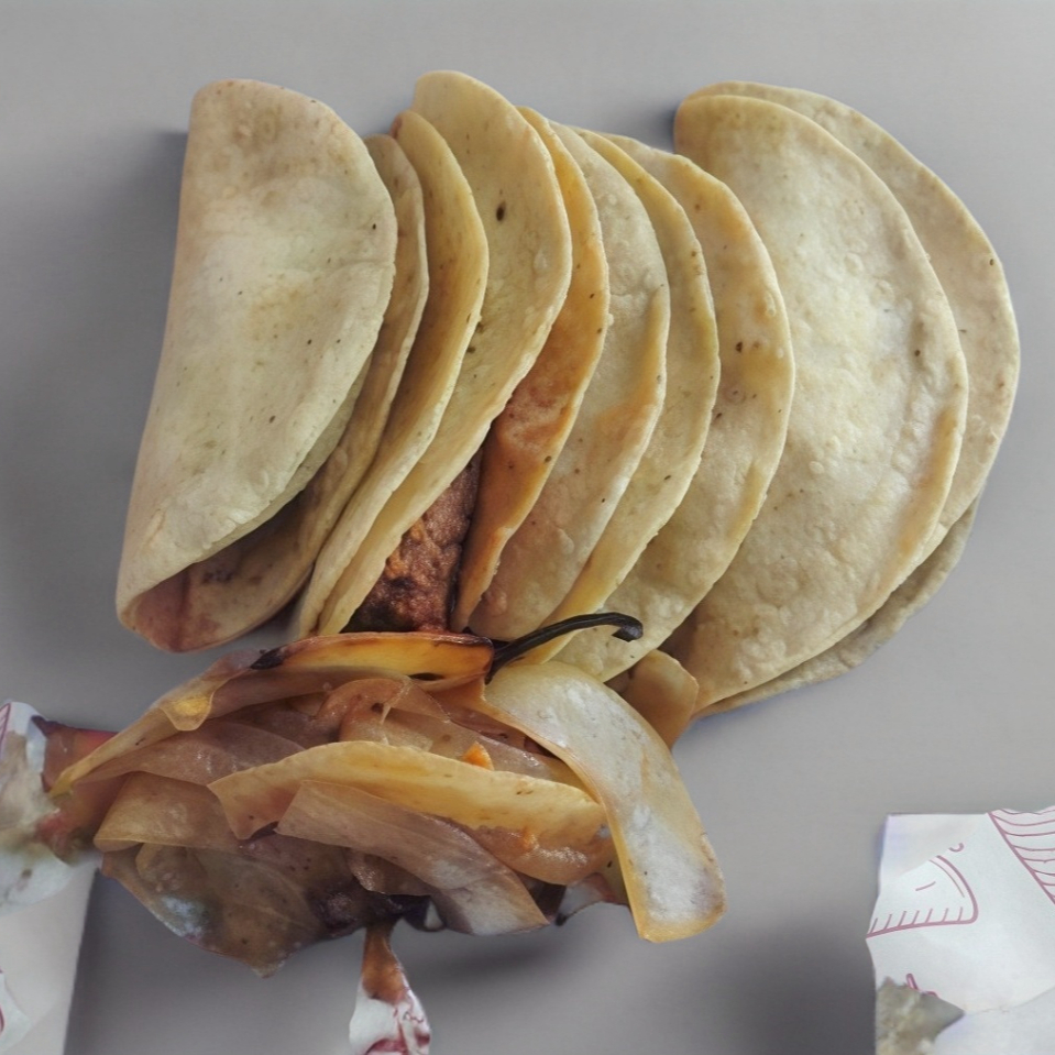 tortilla doble tamaño mediano con barbacoa de res (30g).