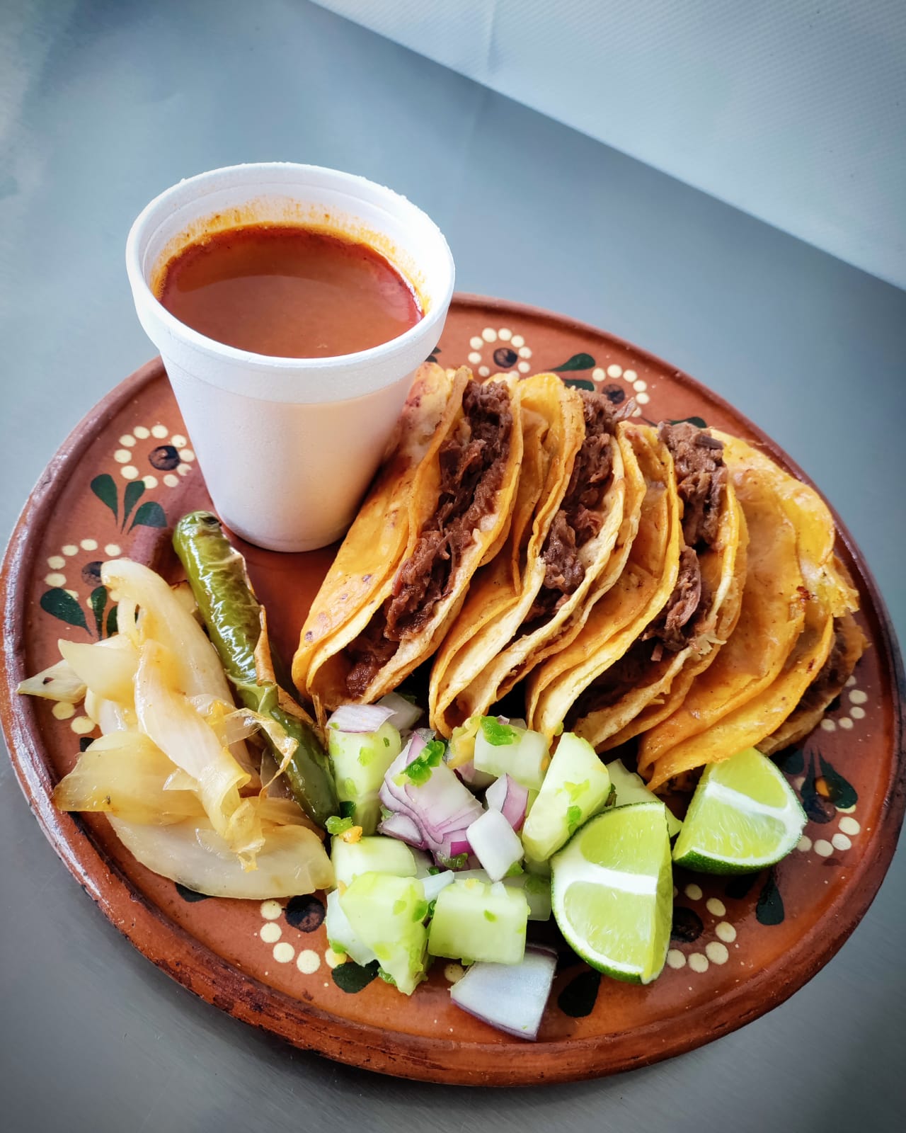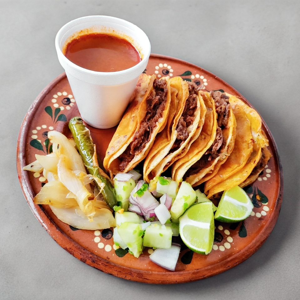 4 TACOS tortilla doble tamaño mediano con barbacoa de res
