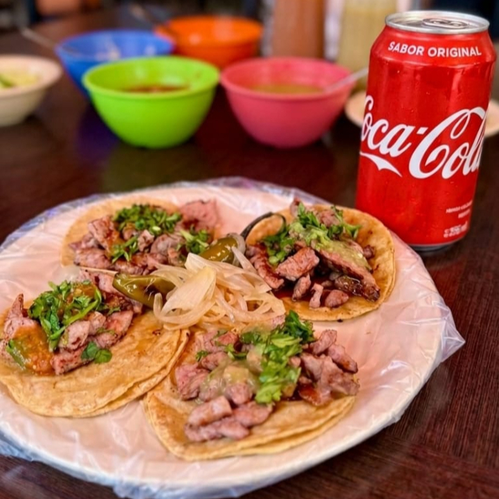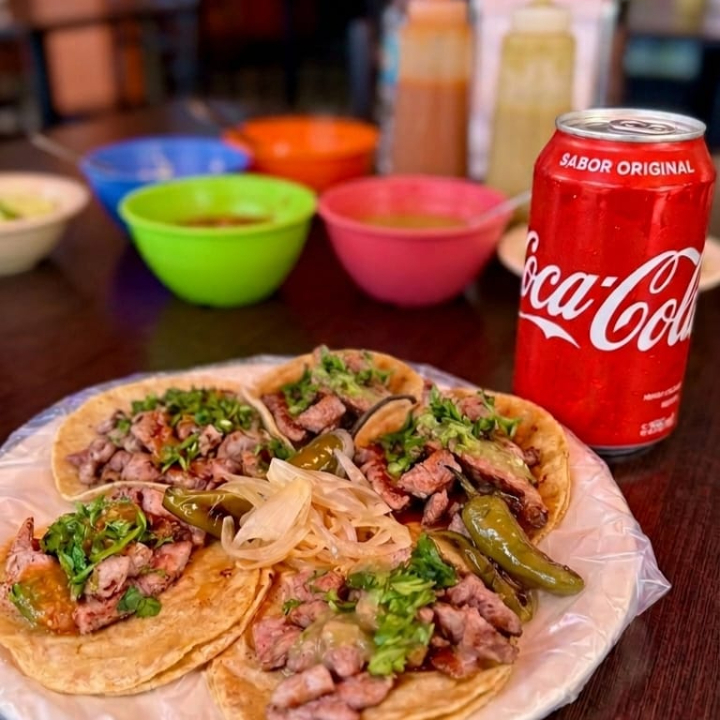 Combo con 4 tacos a elegir acompañados de refresco de 450ml, una opción practica. (Imágenes con fines ilustrativos. El producto entregado puede tener una presentación diferente.)