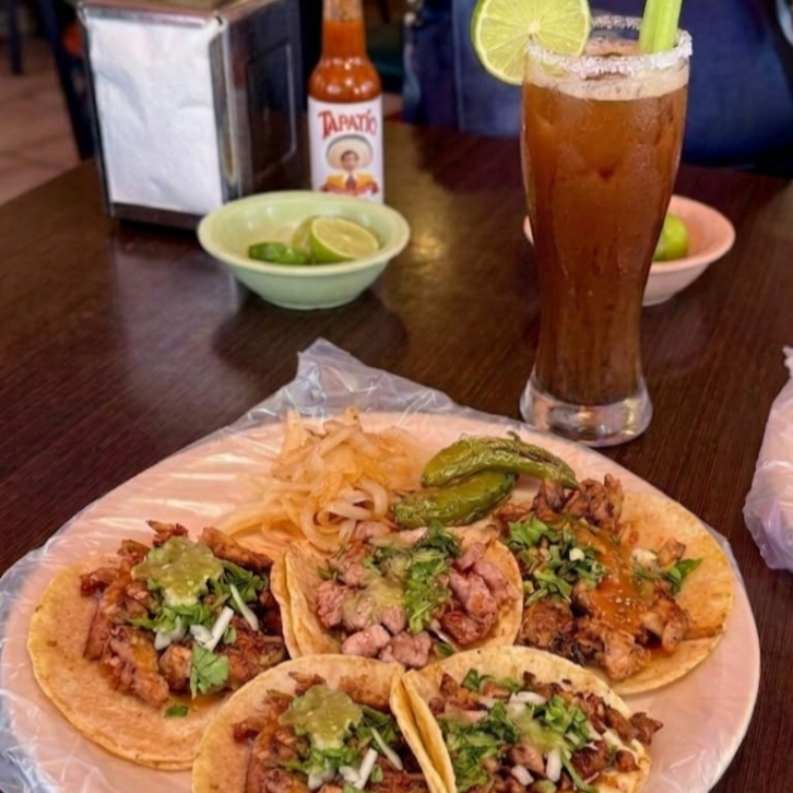 Combo con 5 tacos a elegir acompañados de un preparado de litro, una combinacion refrescante
