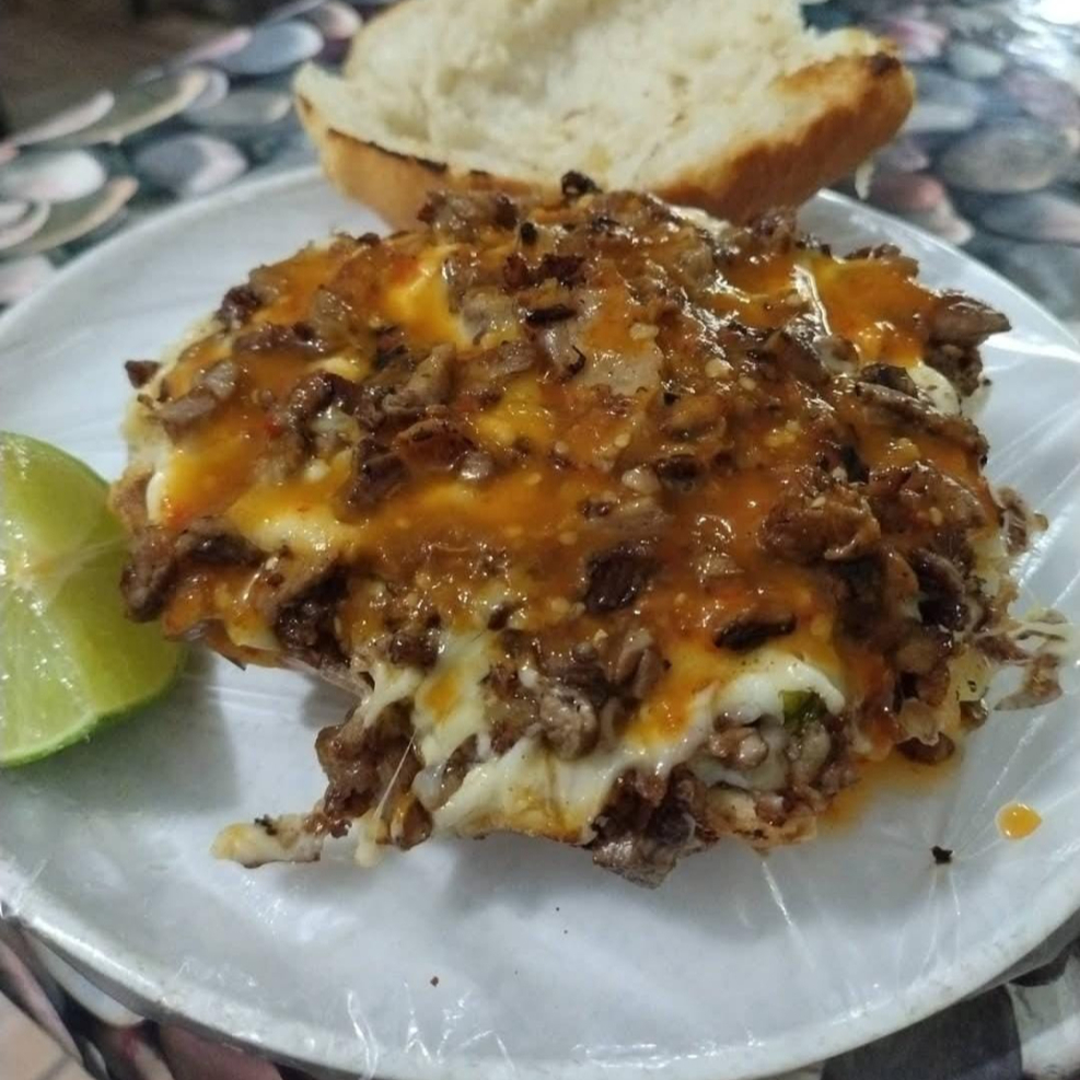 Torta con queso de suadero