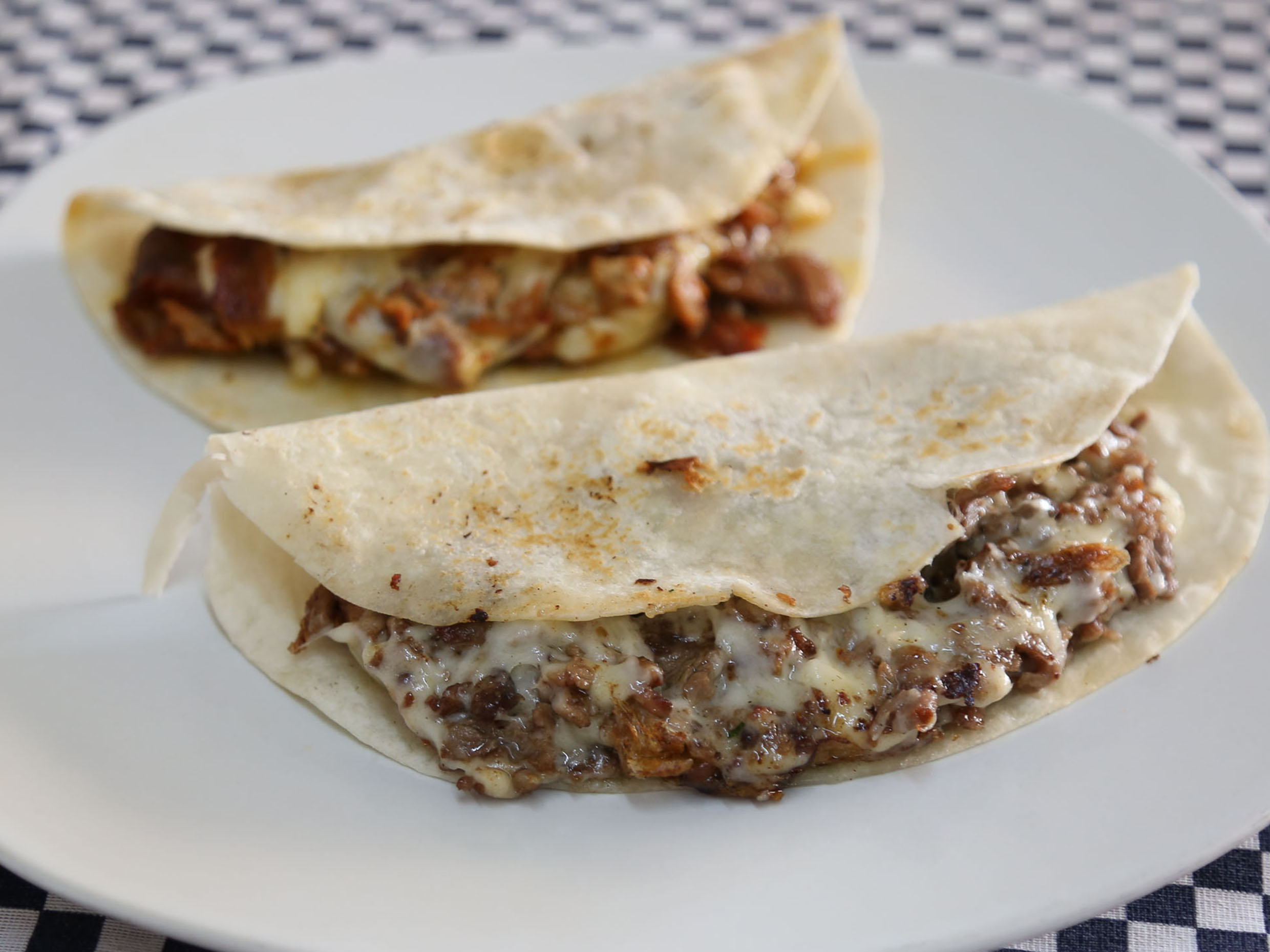 Tortilla de harina, suadero y queso asadero