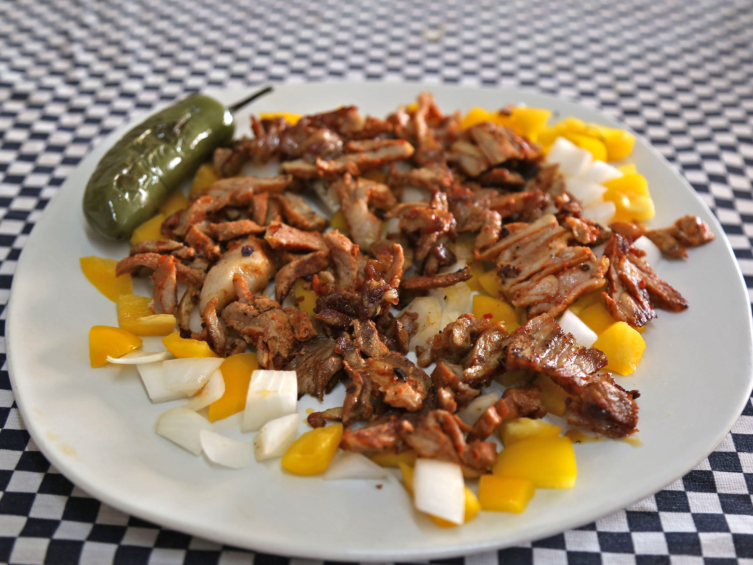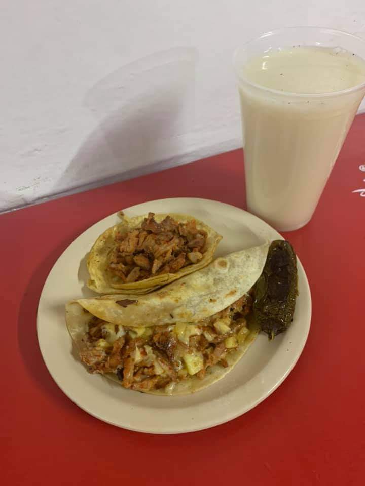 Taco de pastor (1 pieza): Tortilla acompañada con deliciosa carne de pastor, con cilantro y cebolla. Salsas por aparte.
