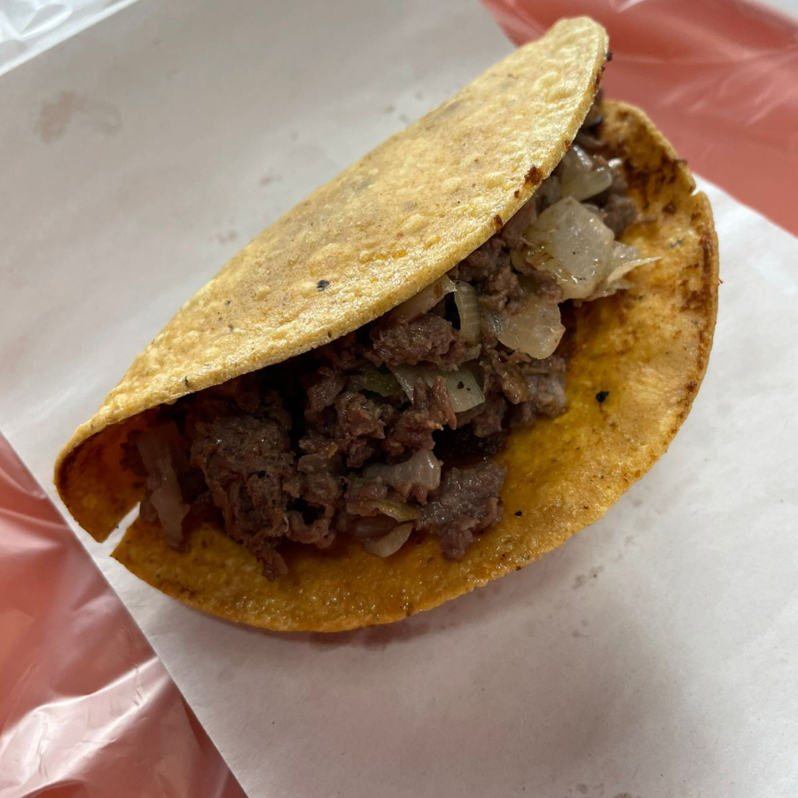 La combinación ganadora: carne y queso en su mejor versión. Nuestro taco envenenado de 22 cm se rellena con frijol, papa y especias, y se fríe hasta quedar crujiente y doradito. Además, se reúne el dueto perfecto: bistec jugoso recién cocinado y queso menonita estilo Chihuahua fundido. Es jugoso, es cremoso, es adictivo. El bistec va guisada con cebolla, no se le puede retirar la cebolla.
