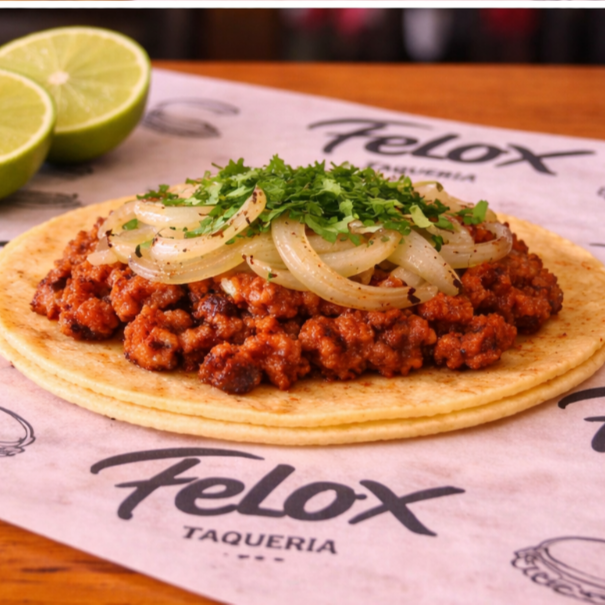 TORTILLA DOBLE TAMAÑO NORMAL ACOMPAÑADO DE CARNE DE RES LIMON PEPINO SALSA VERDE Y ROJA