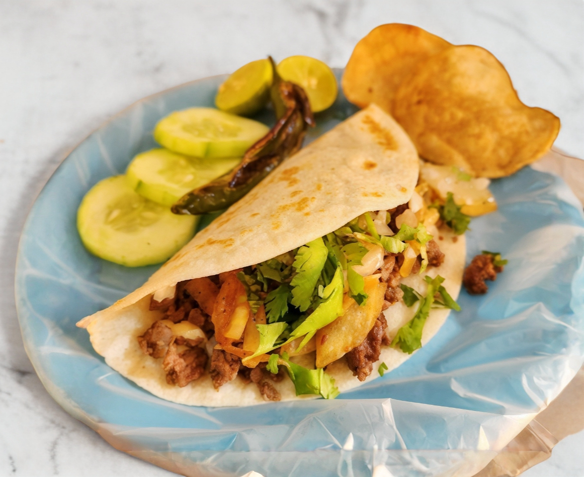 Tortilla de Harina con Queso y Carne de su Eleccion