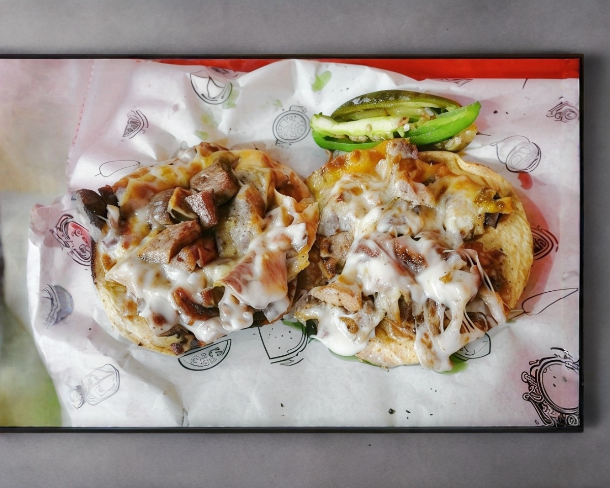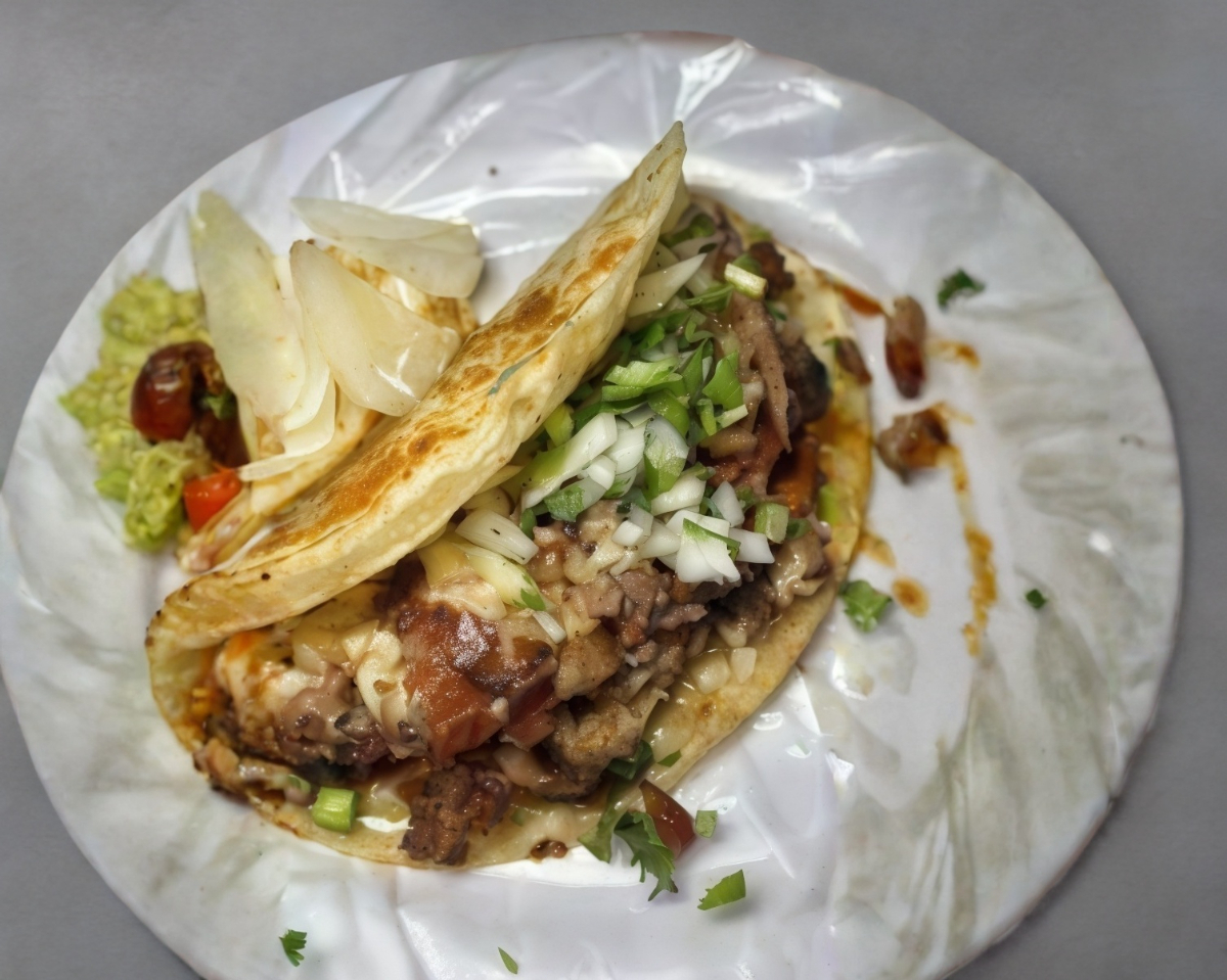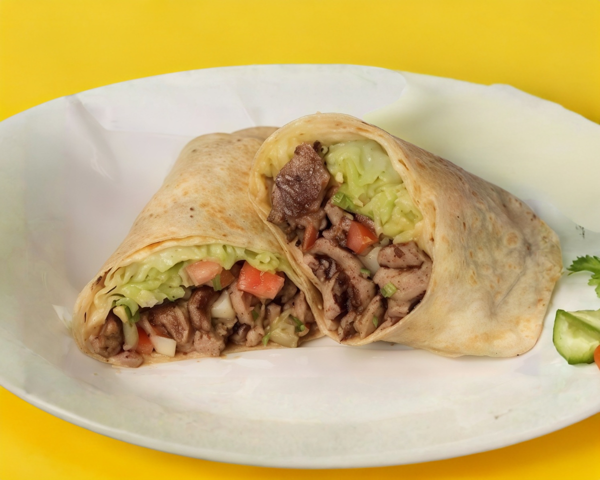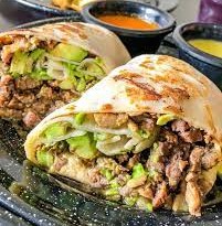 Burro Grande de Pastor ( porcion personal ) 1 Tortilla de harina grande ( 1 pieza), carne de cerdo 235gr neto aprox, queso asadero , verduras por aparte ( cebolla y cilantro ),