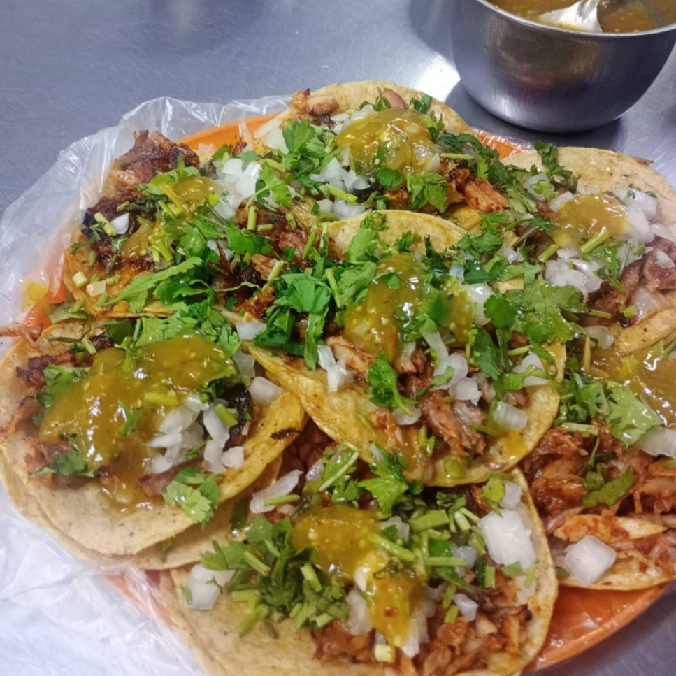 Tacos clásicos favoritos (pastor, suadero, buche, cabeza, chorizo).