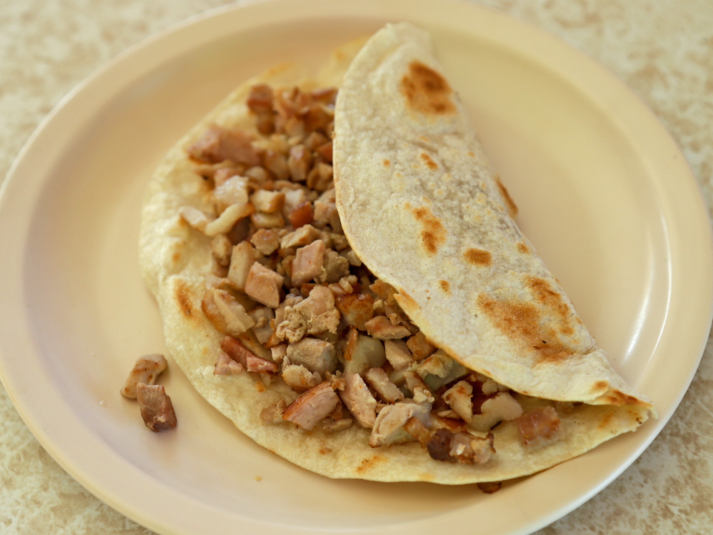 Carne al pastor, tocino y queso con tortillas de harina(5).