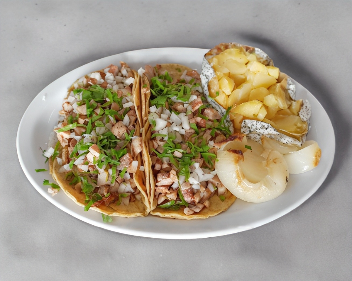 Combinación de 2 carnes en tortillas de maiz.