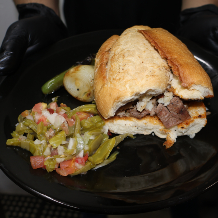 Quesadilla doble con torilla de harina, carne asada, papa y frijol