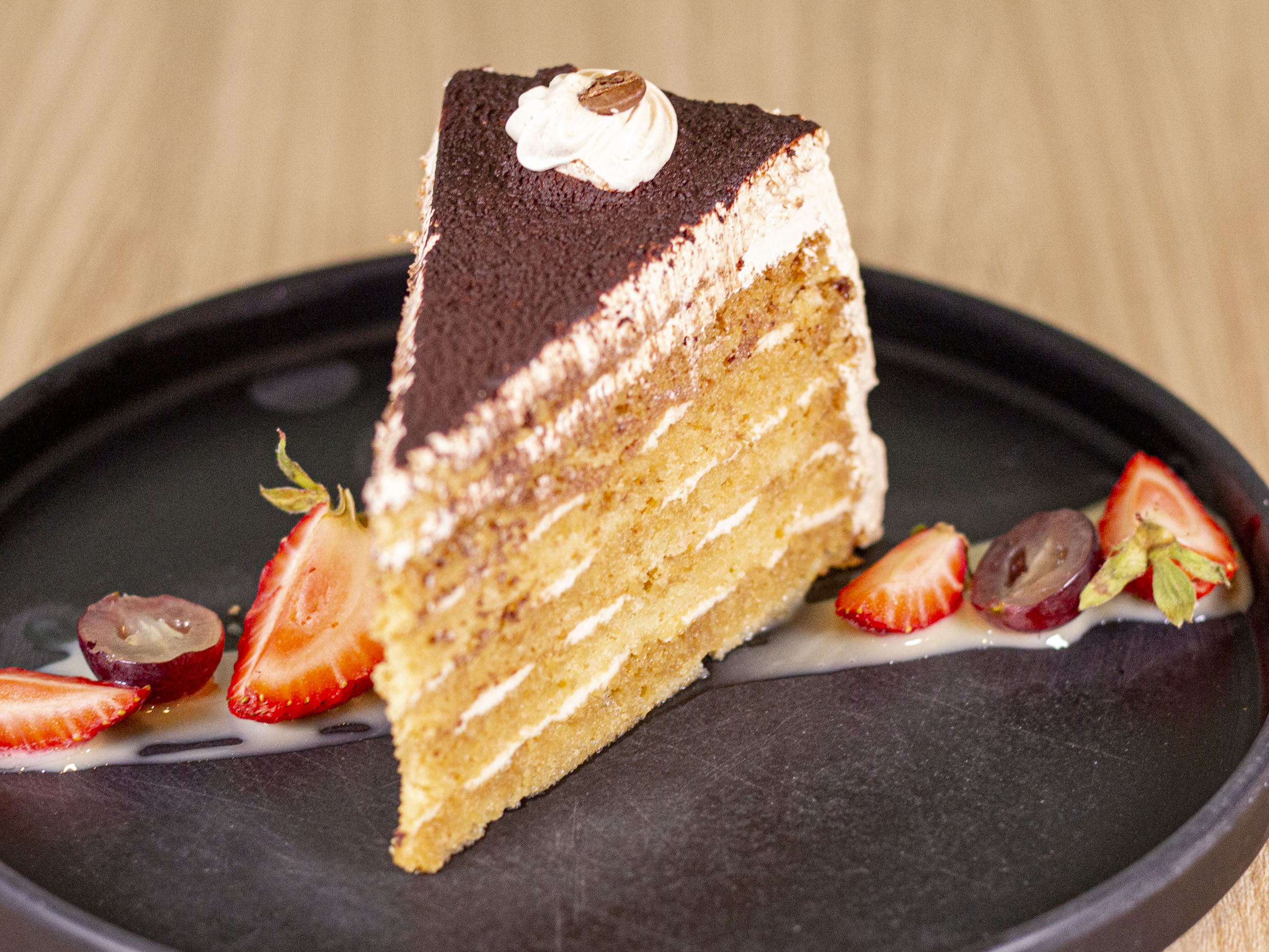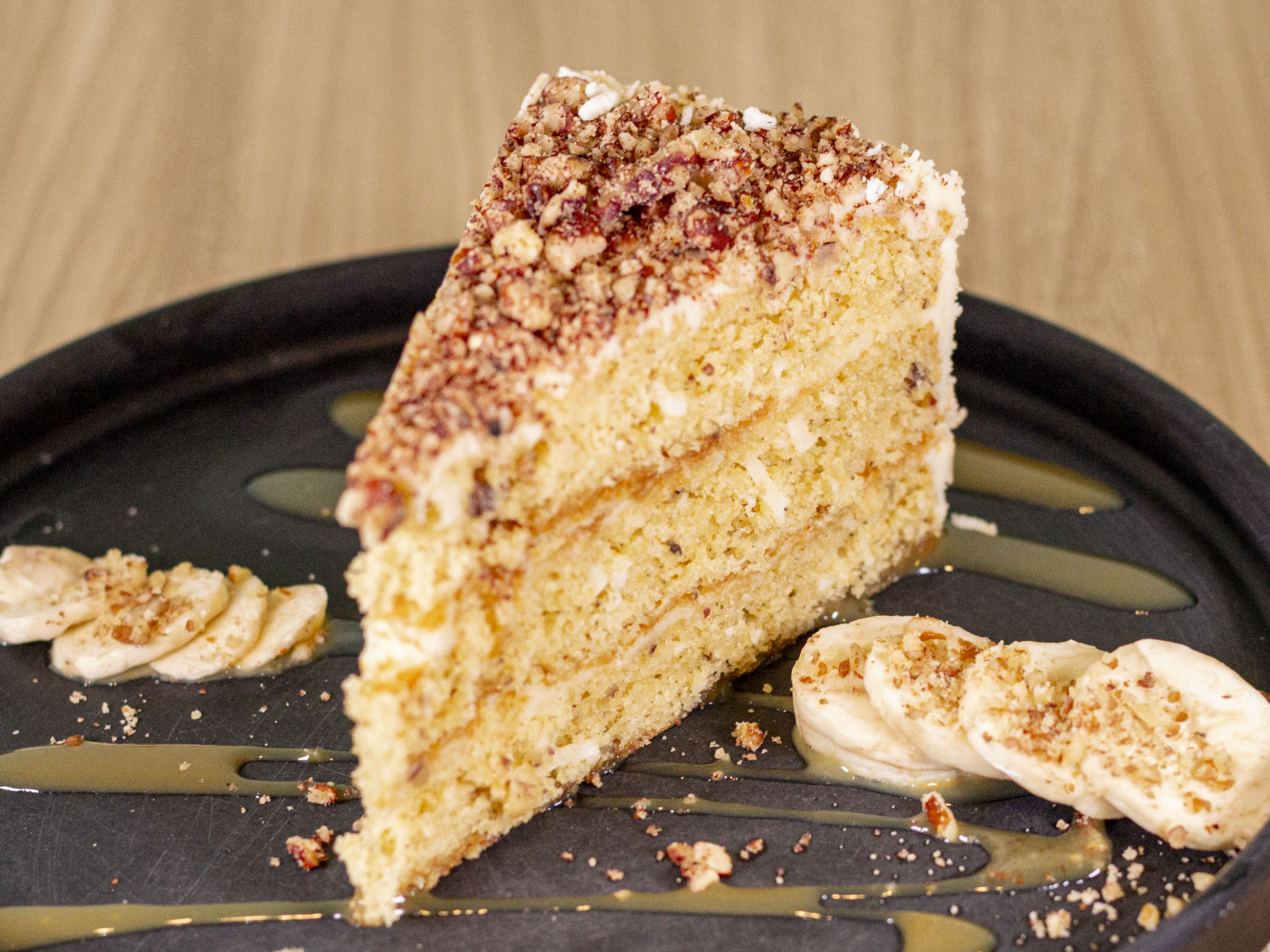 Pan semiblando de nuez y coco, bañado en crema italiana