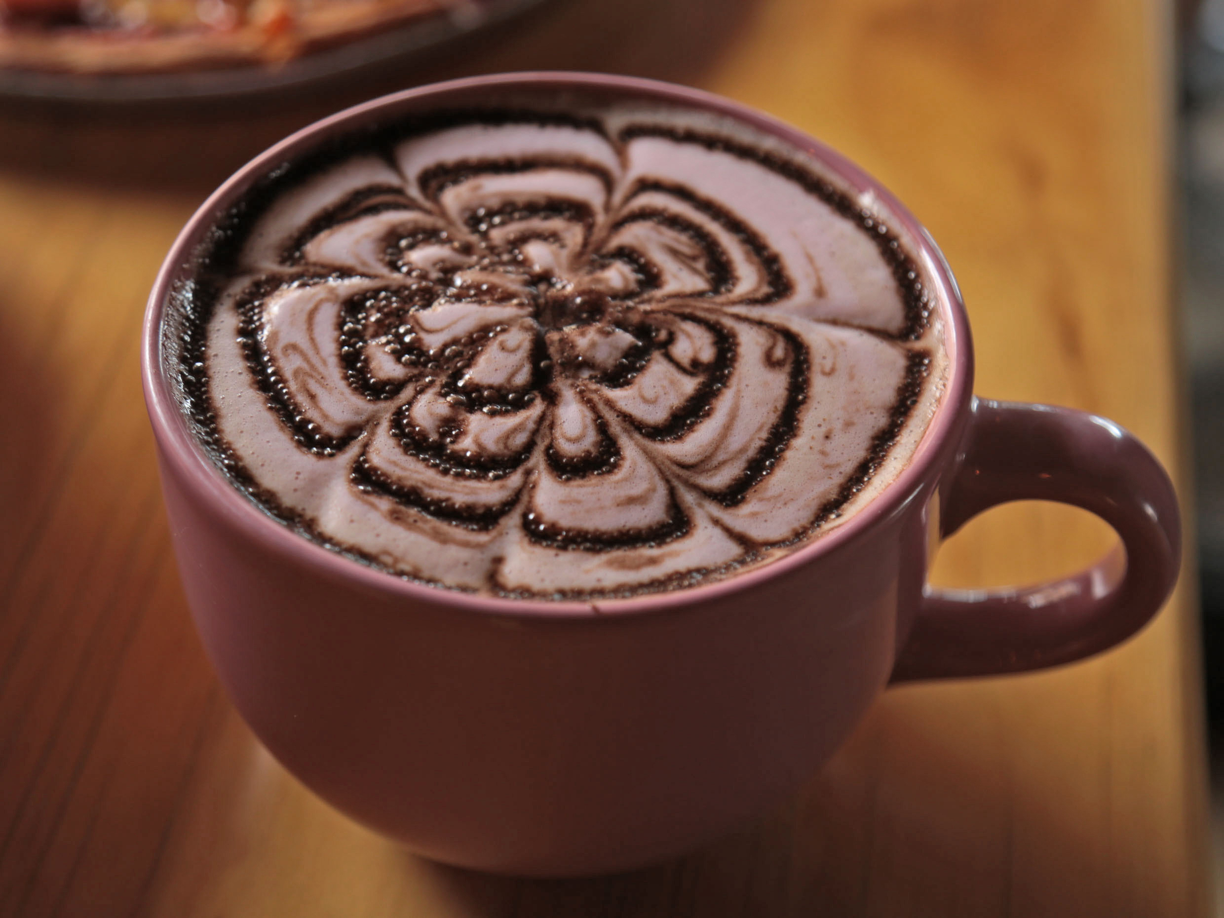 Capuchino con mezcla de chocolate europeo y sabor cereza