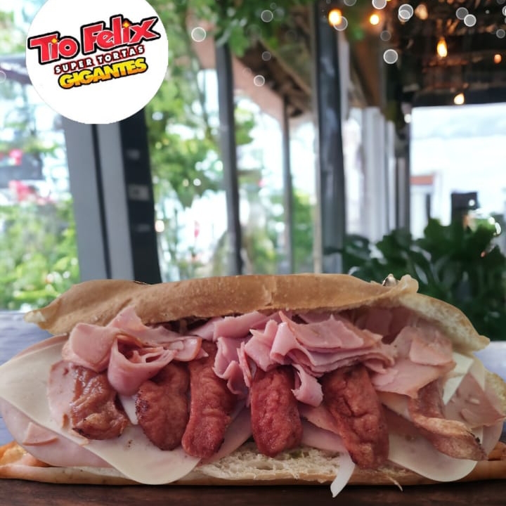 Chorizo, salchichas y queso asadero (Todas nuestras tortas llevan Aguacate, Jitomate, Cebolla, Chile y Aderezo)