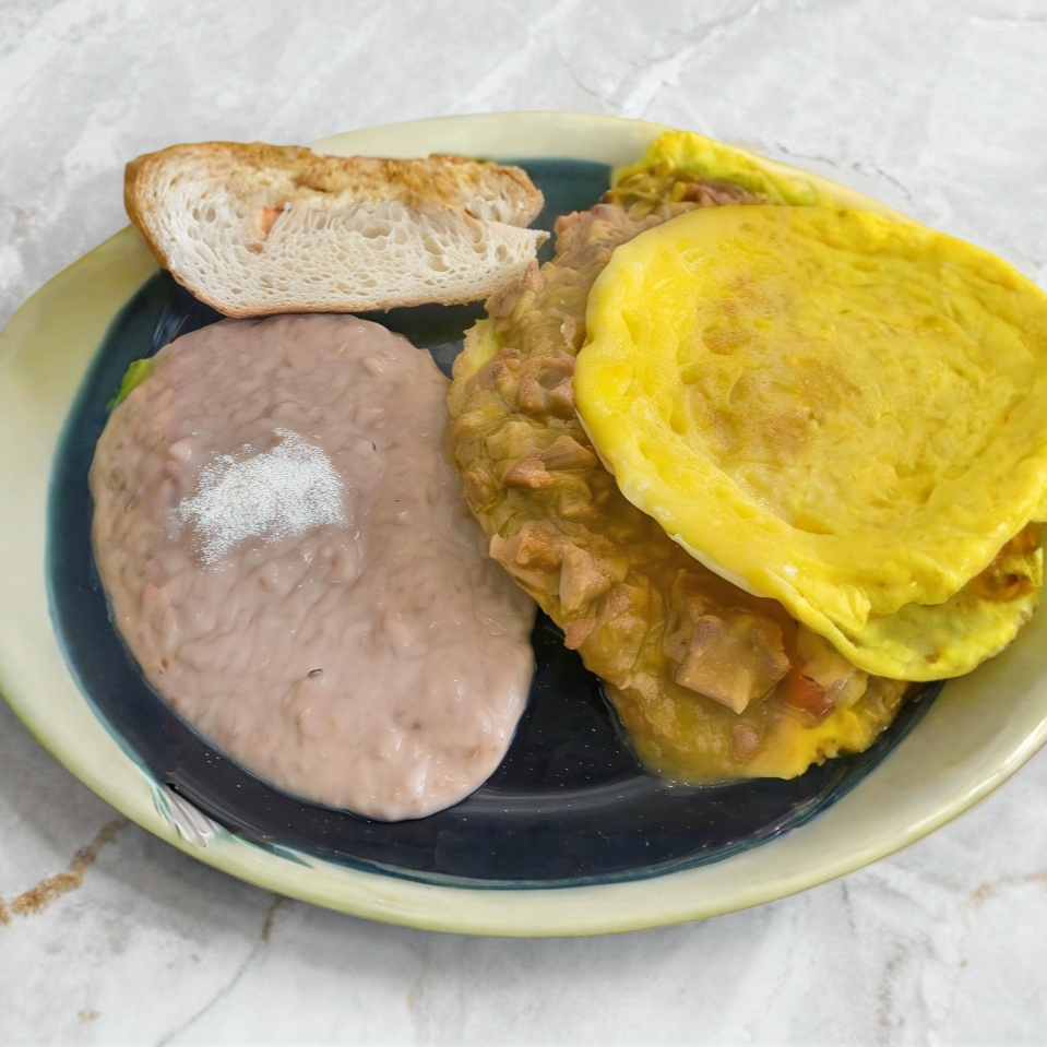 Acompañado de frijoles y rebanadas de bolillo