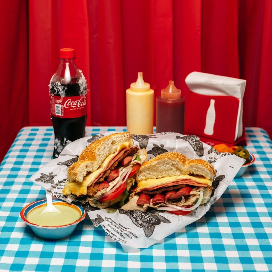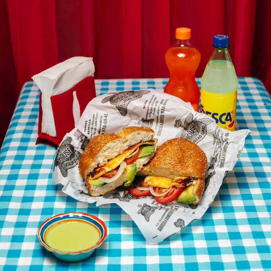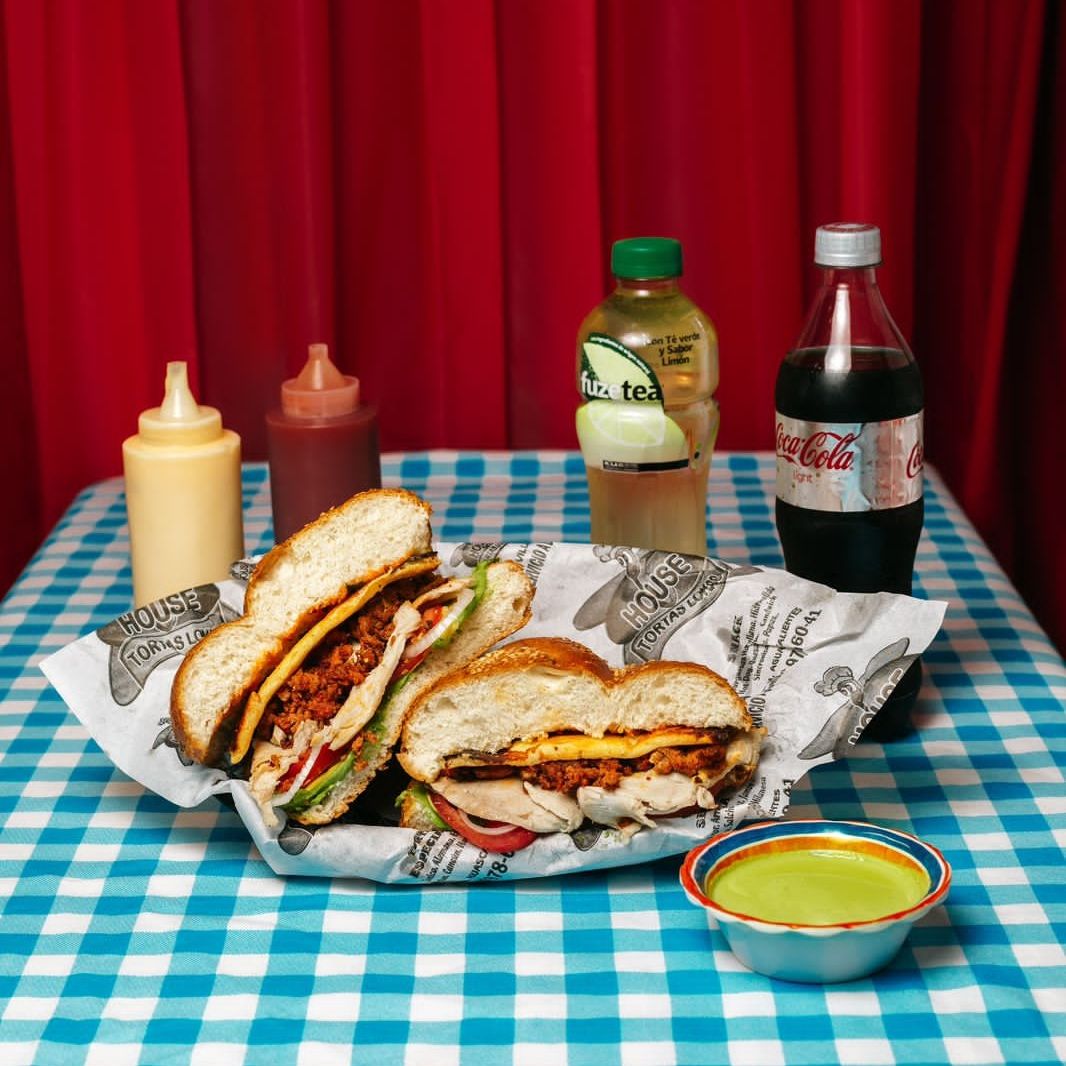 Combo personal: Torta House con pierna, milanesa, salchicha, jamón de puerco y queso asadero, acompañada de refresco de 600 ml a elección.