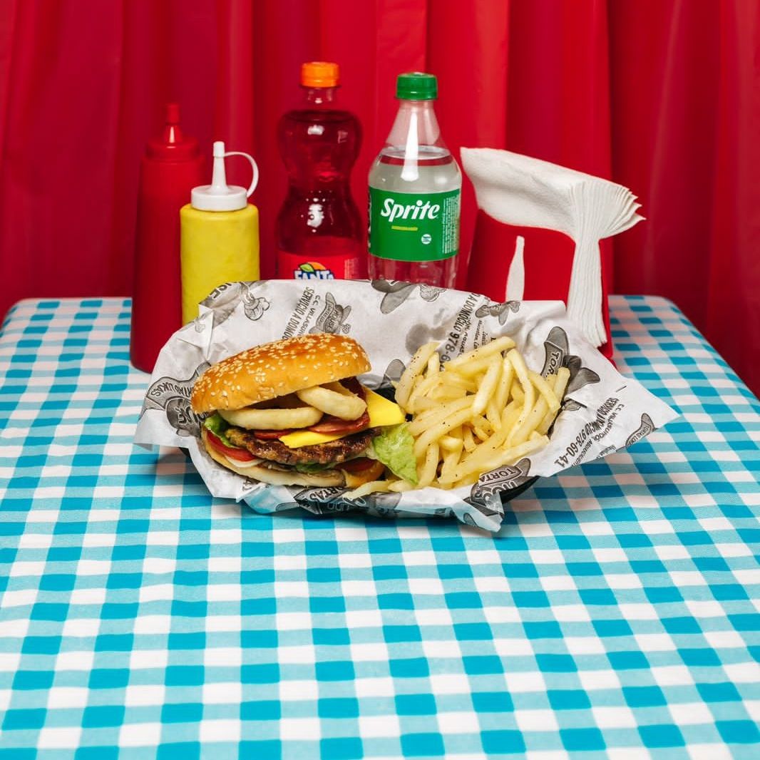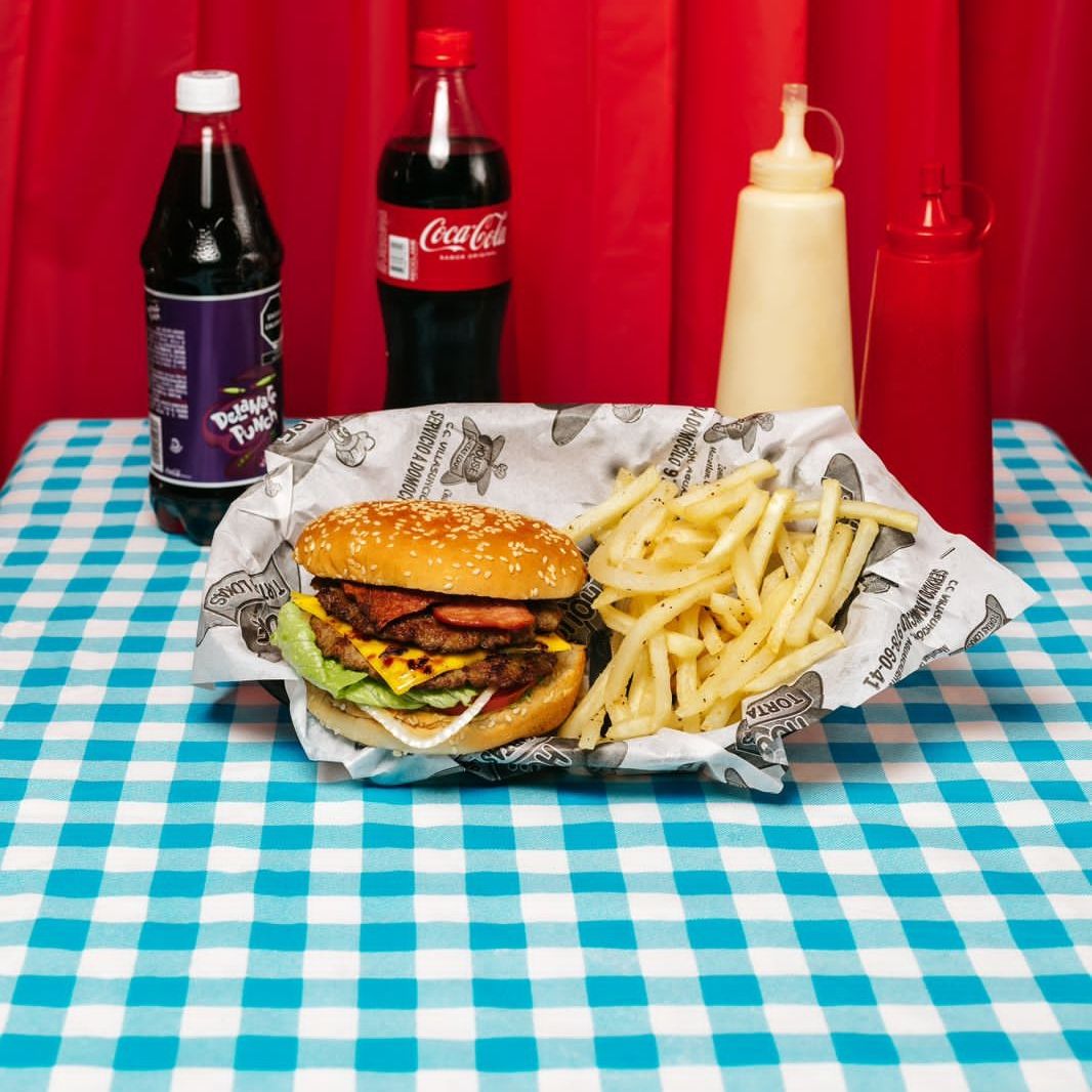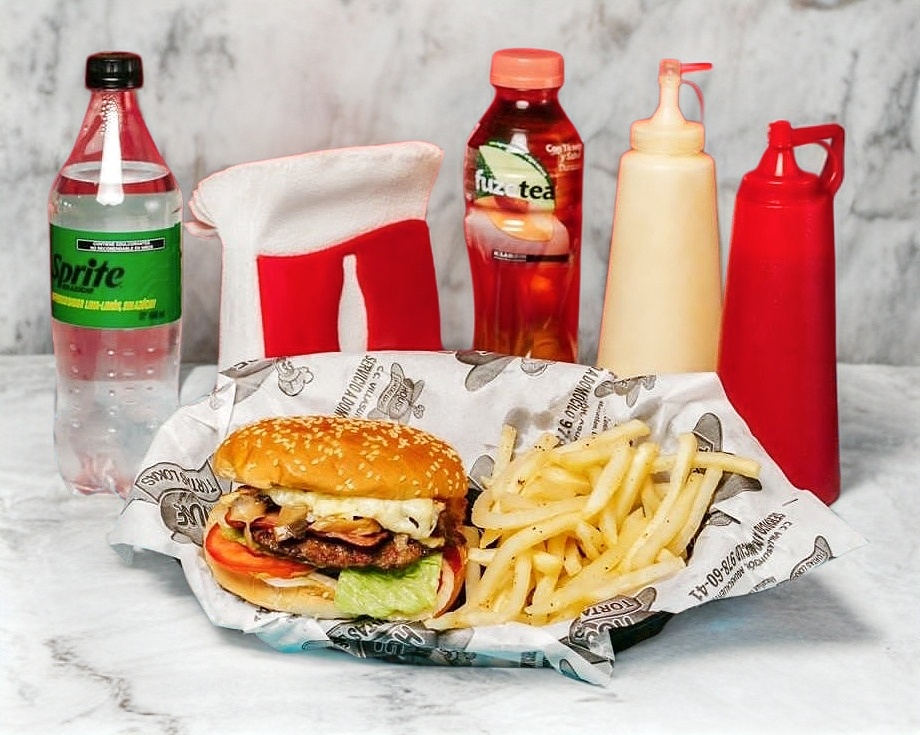 HAMBURGUESA CON PAPAS Y REFRESCO