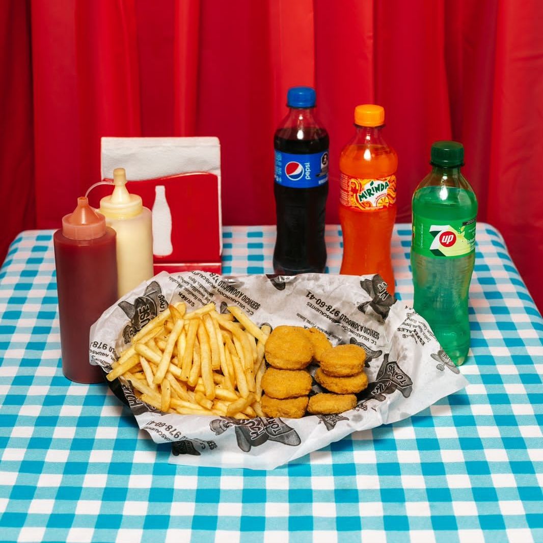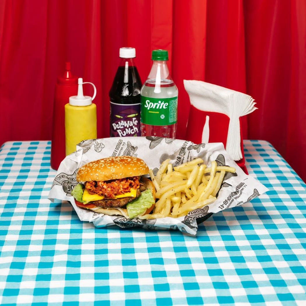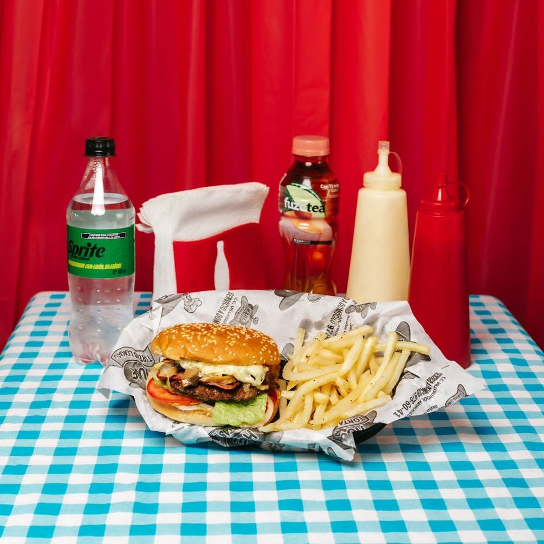 HAMBURGUESA CON PAPAS Y REFRESCO