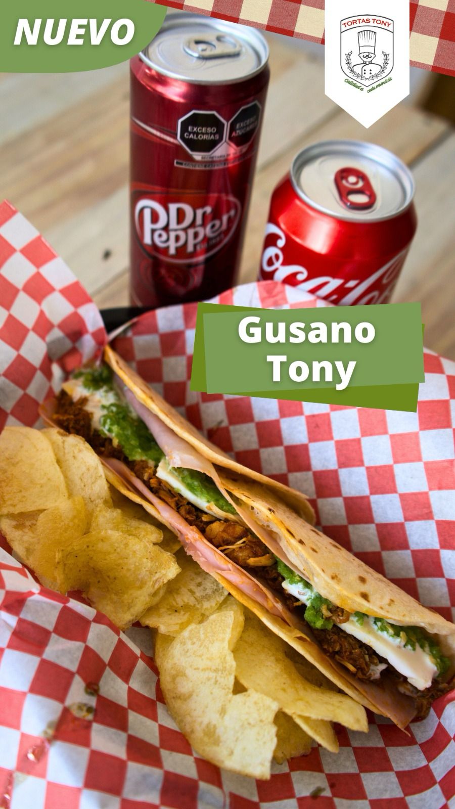 Carne Adobada, Cama de Frijoles, Milanesa Pierna, Queso Fresco, Cebolla Caramelizada, Salsa Verde