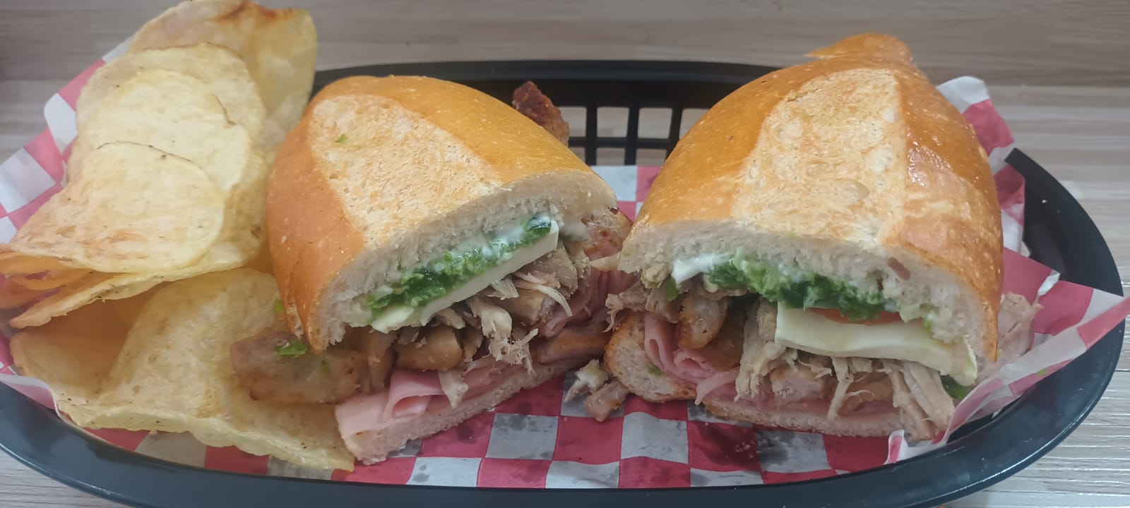 Tortas con Jamón, Milanes, Pierna, Queso Panela y Salsa Verde