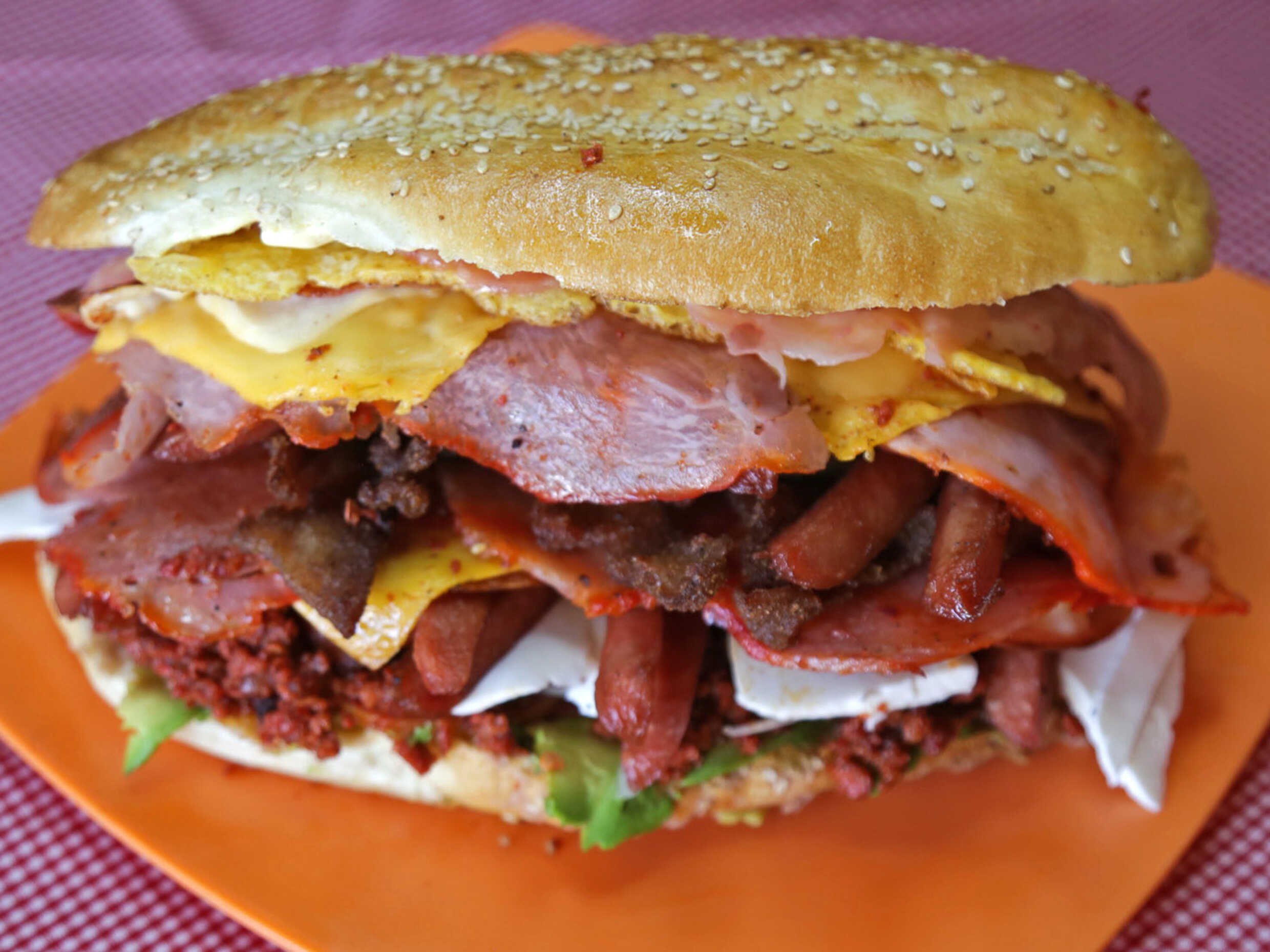 Milanesa, salchicha y huevo.