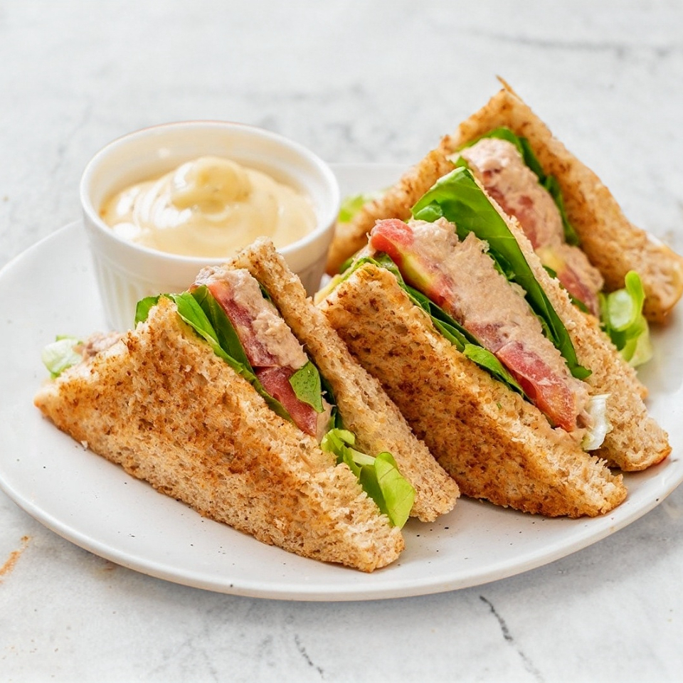 Preparado con pan alto en fibra, con atún en agua, aguacate, cebolla, jitomate, lechuga y queso