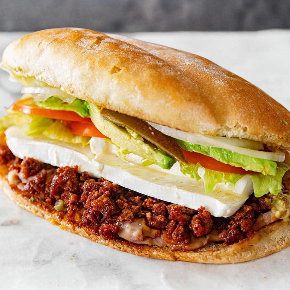 Preparado con pan alto en fibra, con mayonesa,queso de puerco, aguacate, cebolla, jitomate, lechuga y queso