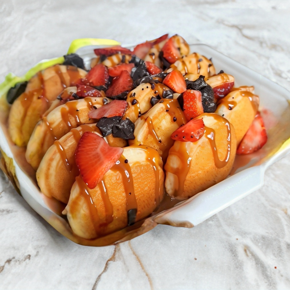 Preparados al momento, pueden estar acompañados de lechera, mermelada de fresa, chocolate o maple.