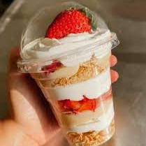 Deliciosas fresas bañadas con una rica crema batida, de base contienen galleta maria y puedes acompañarlas de tu topping favorita.