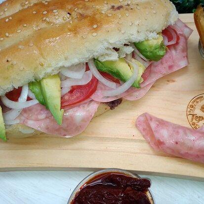 Preparada con Jamón de pierna, jitomate, cebolla, rajas de chiles jalapeños, aguacate, lechuga y queso.