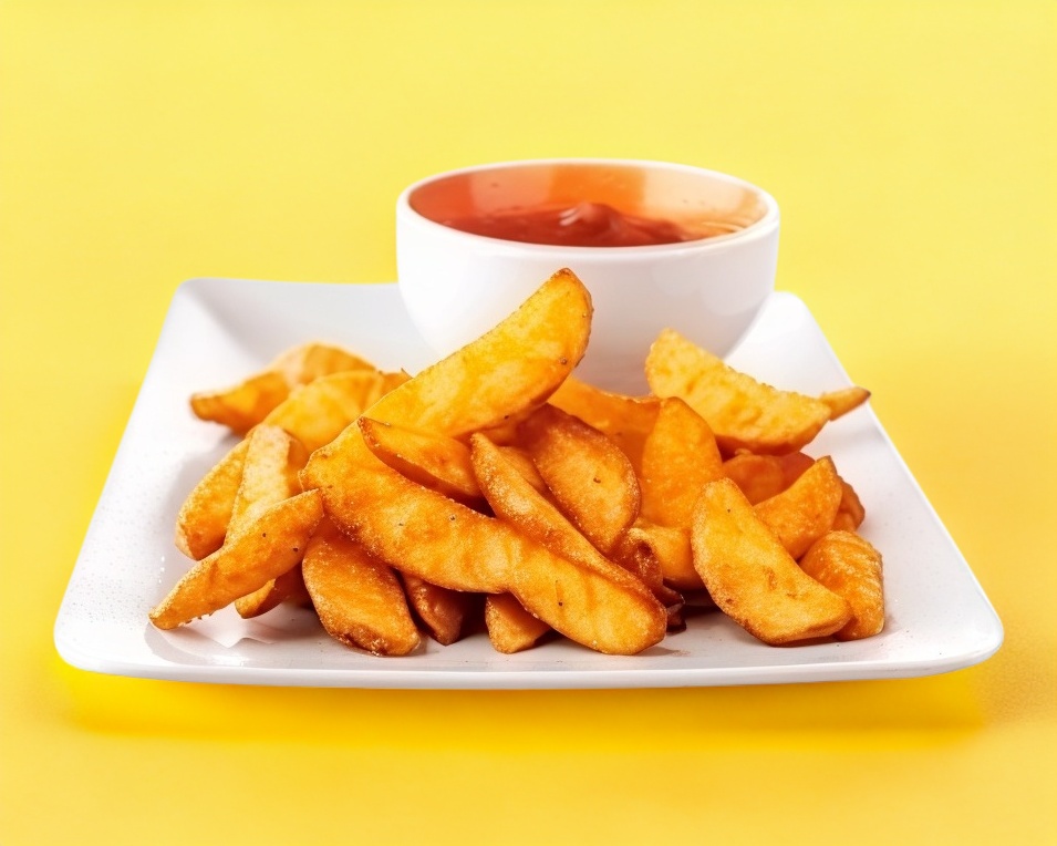 Papas en gajo doradas acompañadas con aderezo ranch.