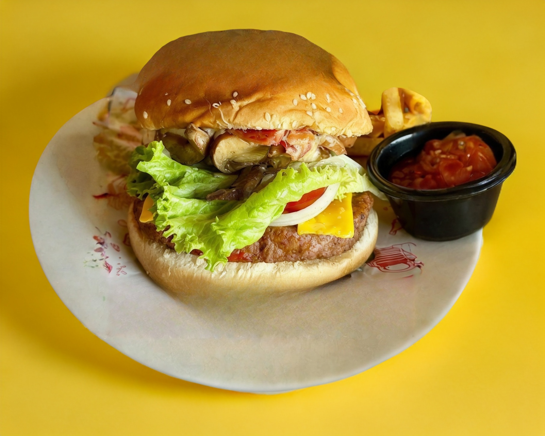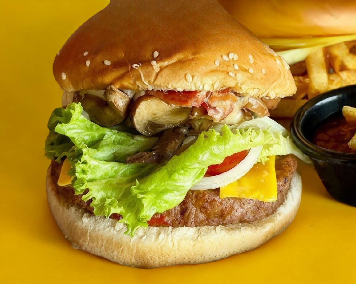 Con champiñones, tocino, queso manchego, queso amarillo y una deliciosa hamburguesa de res 150 g. Acompañadas con papas a la francesa.