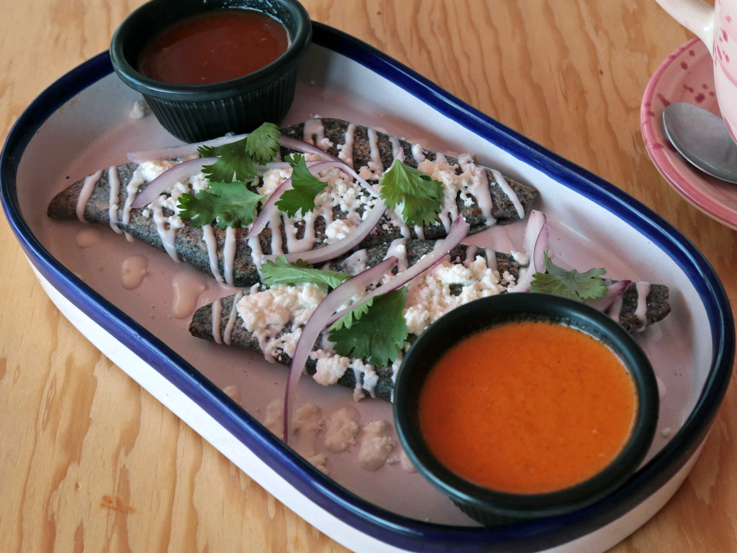 Tacloyos de frijol con salsa a elegir