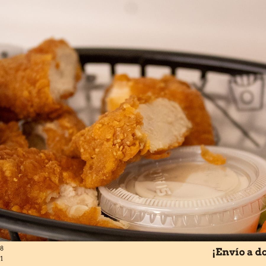 100 g De pollo empanizado, queso amarillo, lechuga, jitomate y cebolla caramelizada.