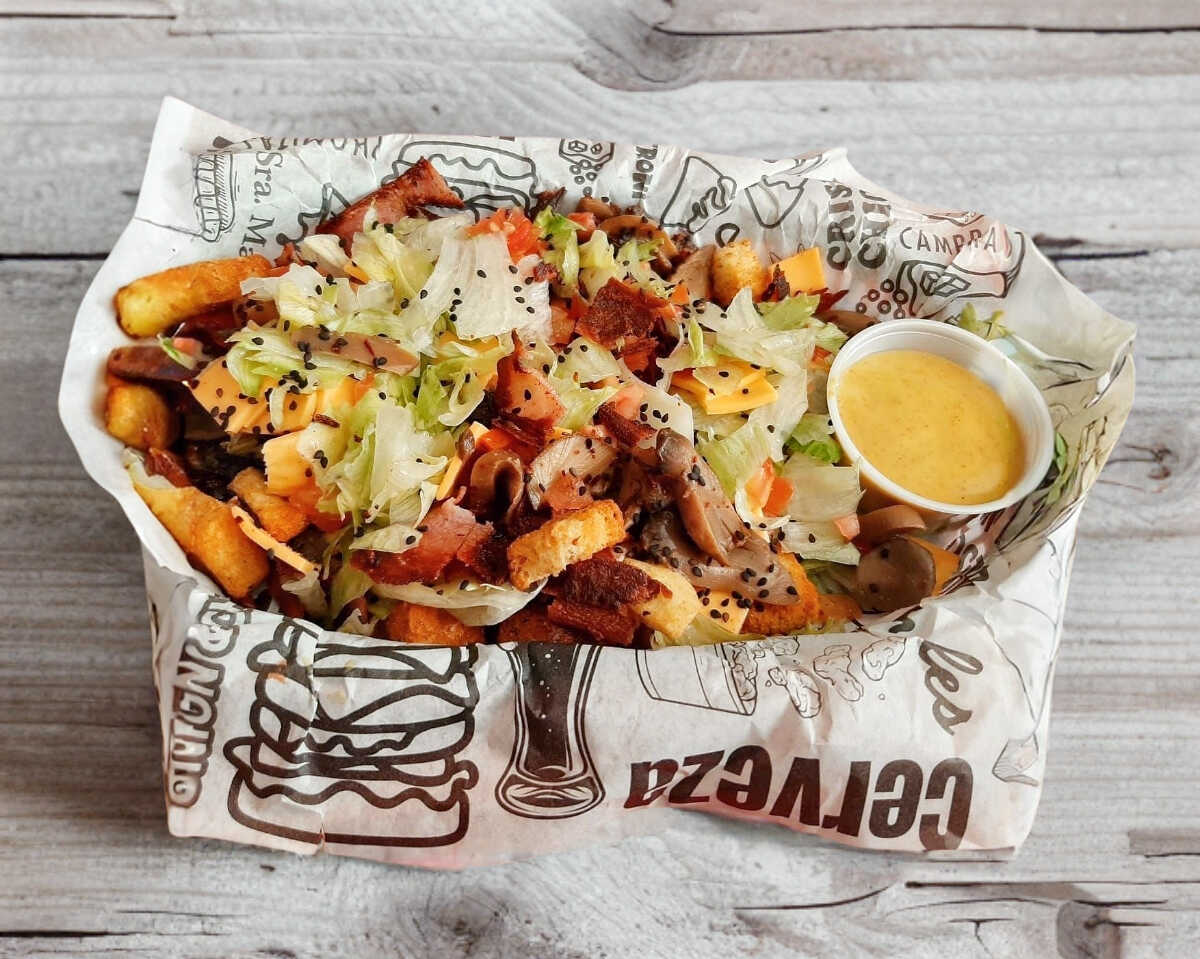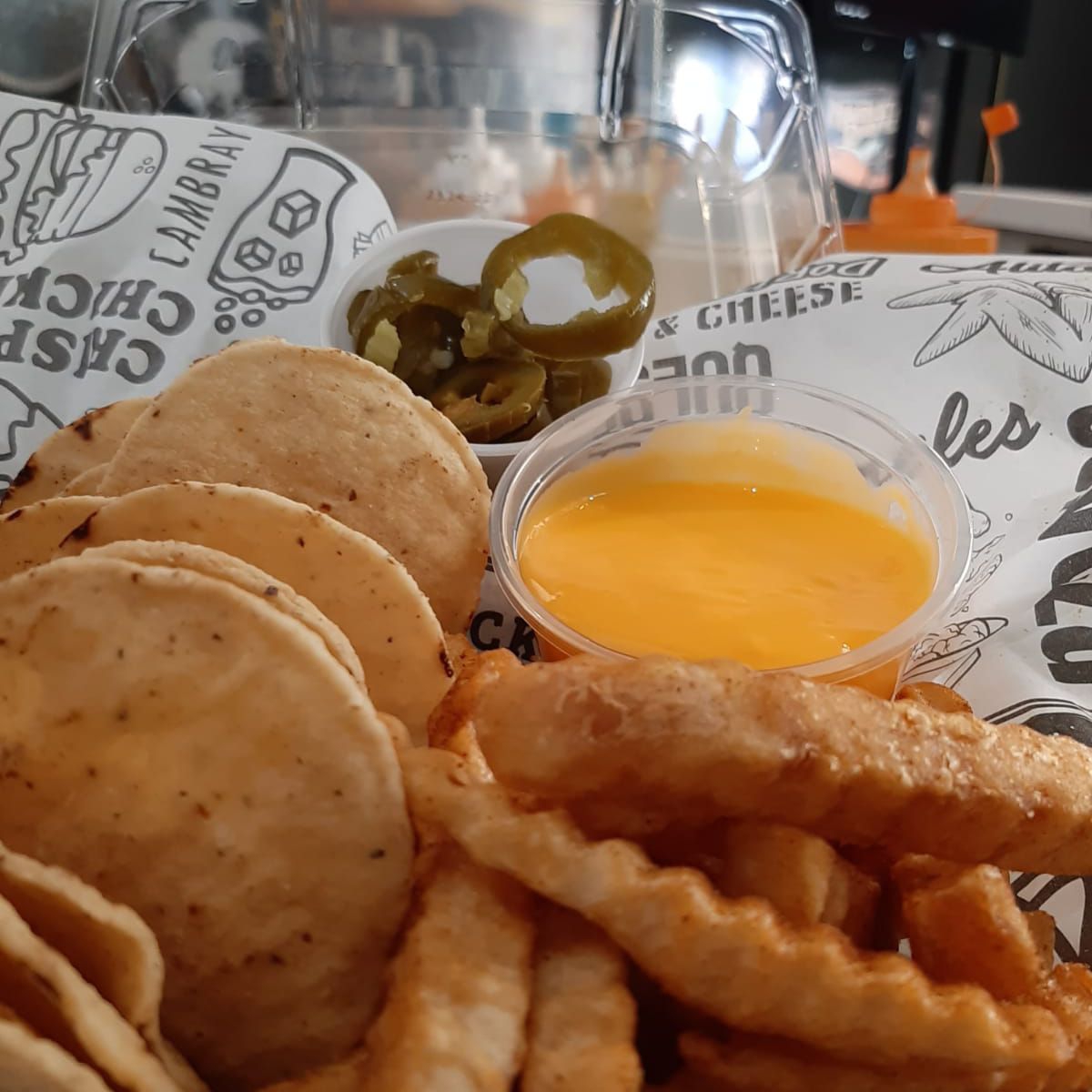250 g De papas french bañadas con queso amarillo y coronadas con rodajas de jalapeño.