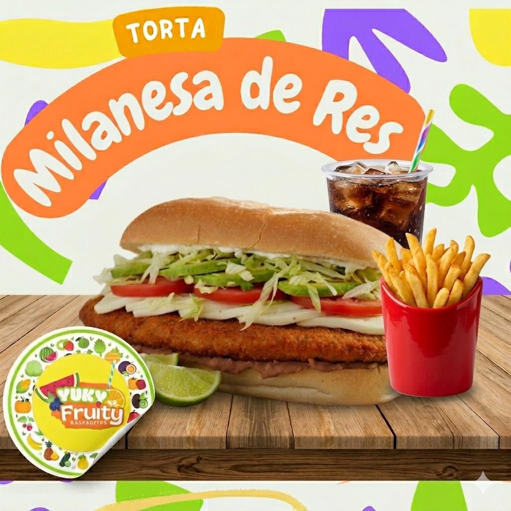 Aderezo, mayonesa y mostaza jitomate, aguacate, chiles, lechuga, milanesa + papas