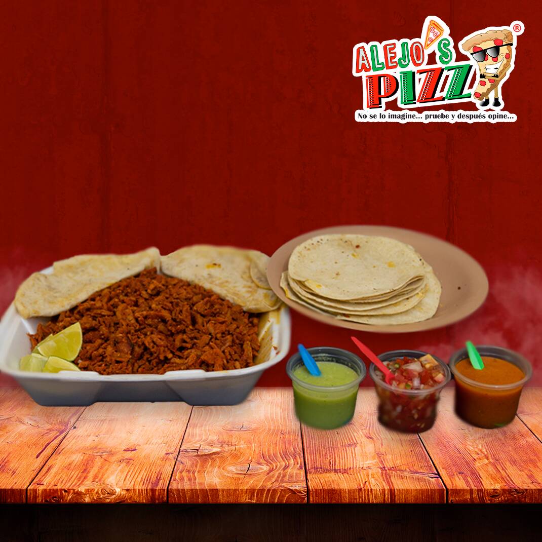 INCLUYE: -CARNE AL PASTOR (450 GR) -CARNE ASADA (450 GR) -24 TORTILLAS -2 QUESADILLAS -SALCHICHA ASADA -CEBOLLA ASADA -CHILES JALAPEÑOS TOREADOS -SALSAS