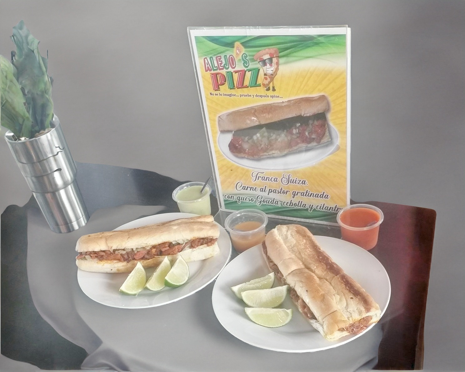 Incluye: salsa roja, salsa verde, habanero, cebolla y cilantro, limón y tortillas.
