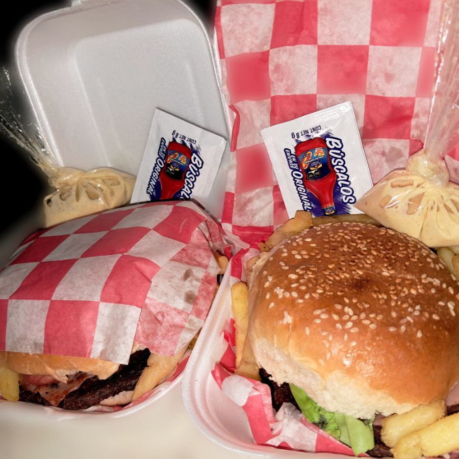 Salsa chile*1 + Salsa catsup y mediacrema*1 + Hamburguesa Clasica*1