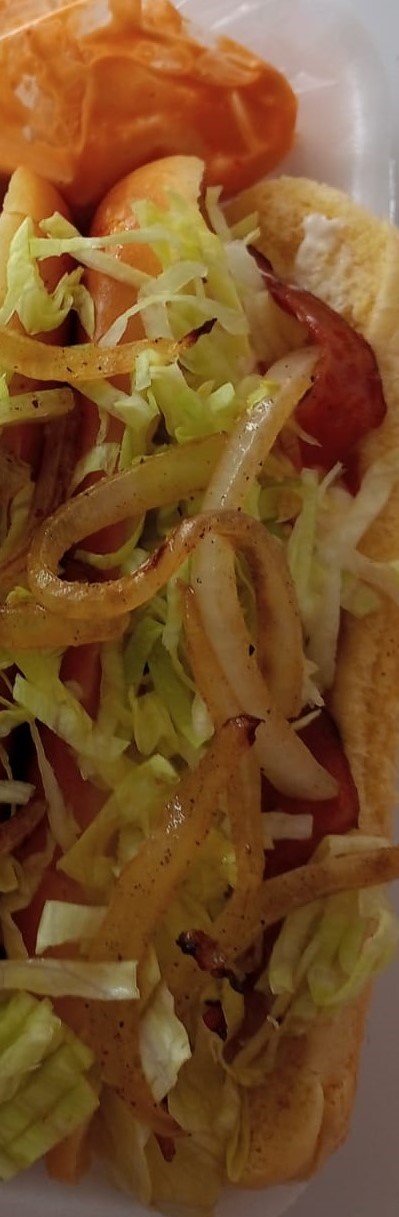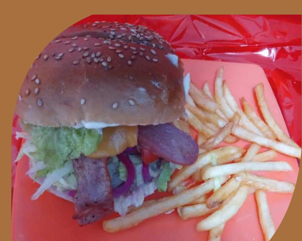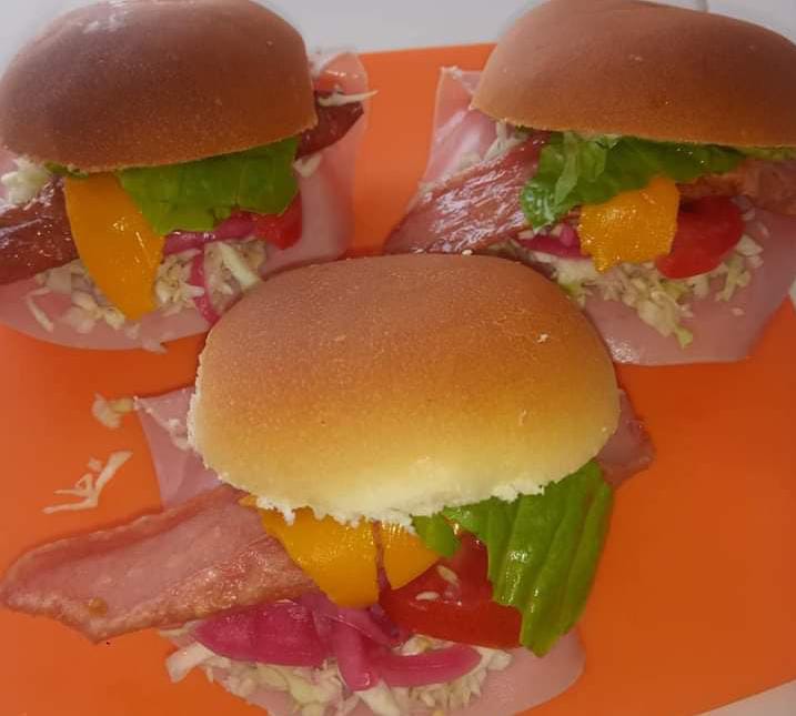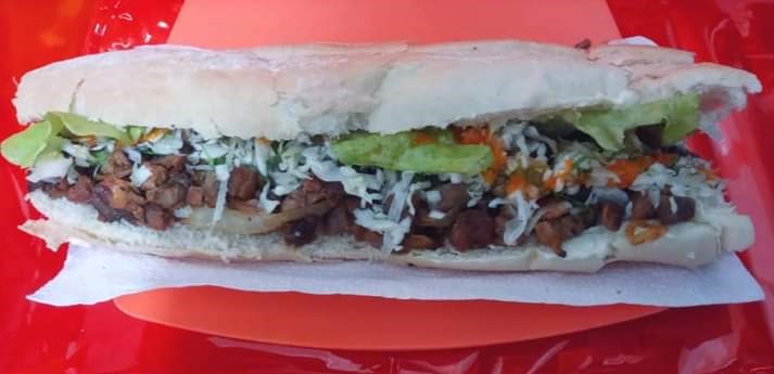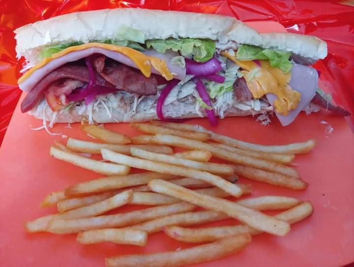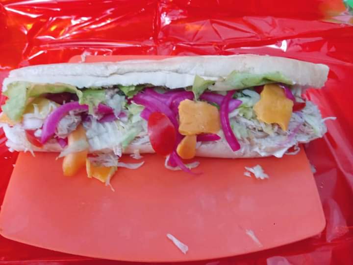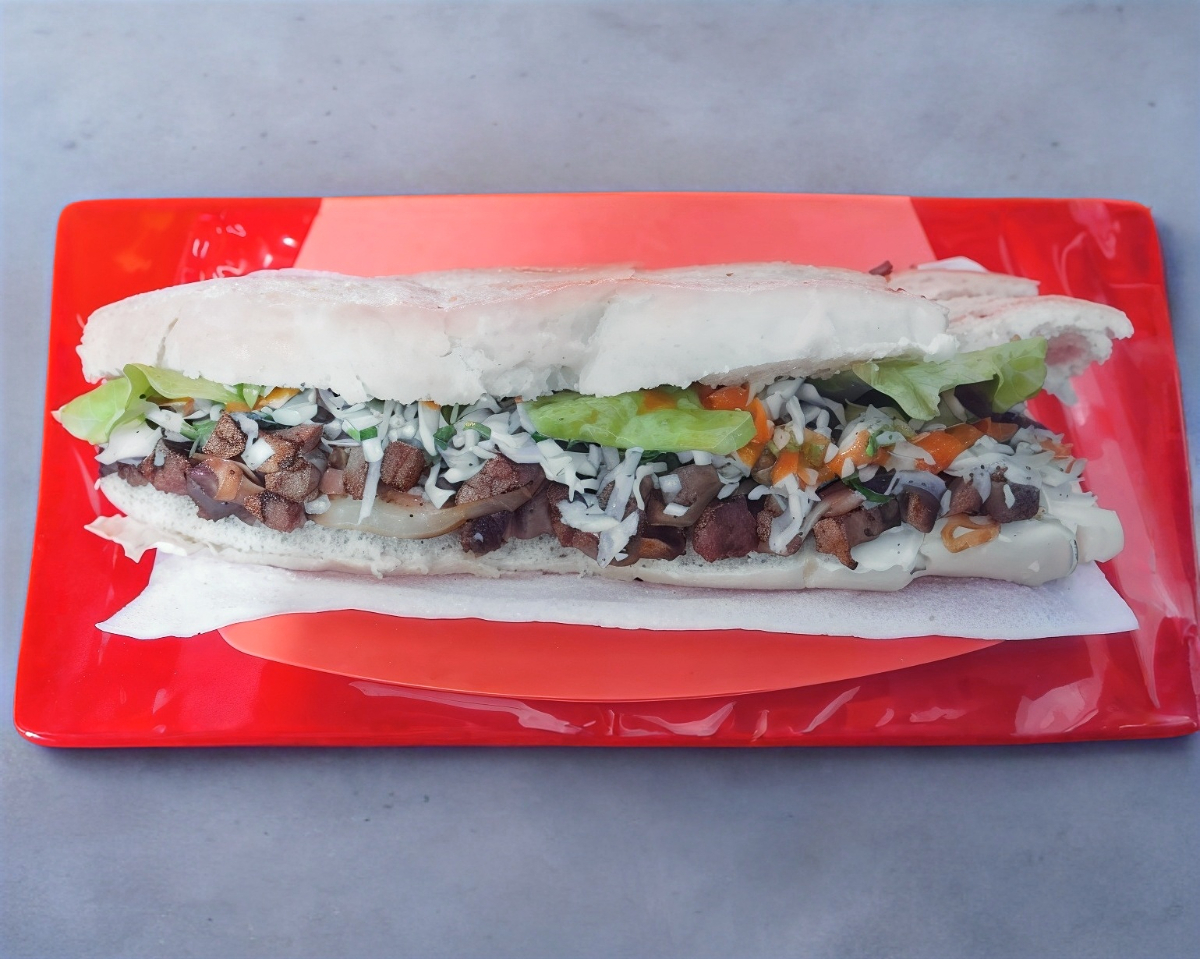 Pollo, jamón, salchicha, tocino, queso Daysi y vegetales.