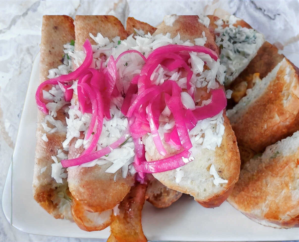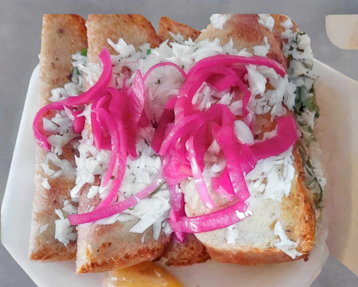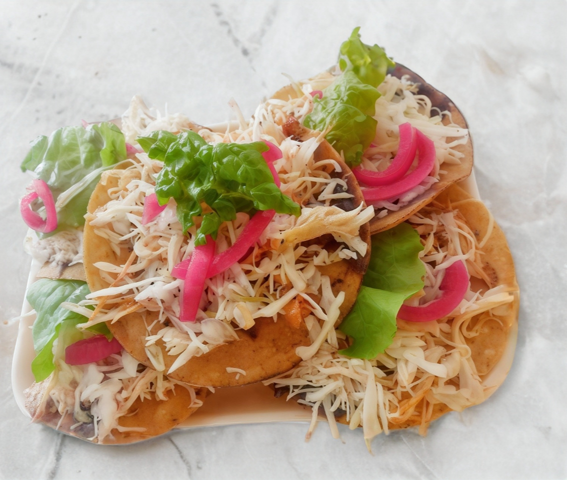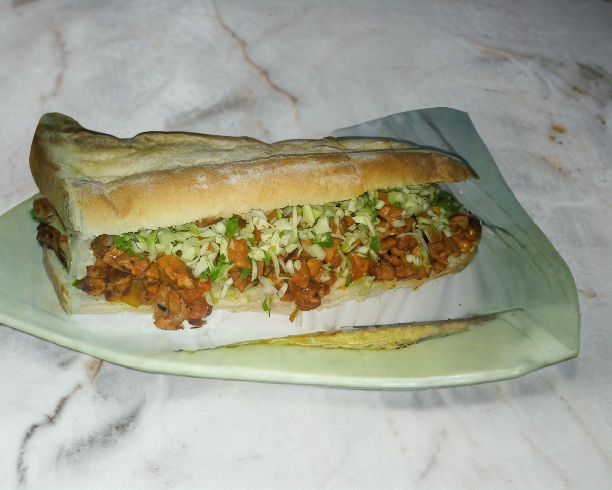 Pollo, jamón, salchicha, tocino, queso Daysi y vegetales.