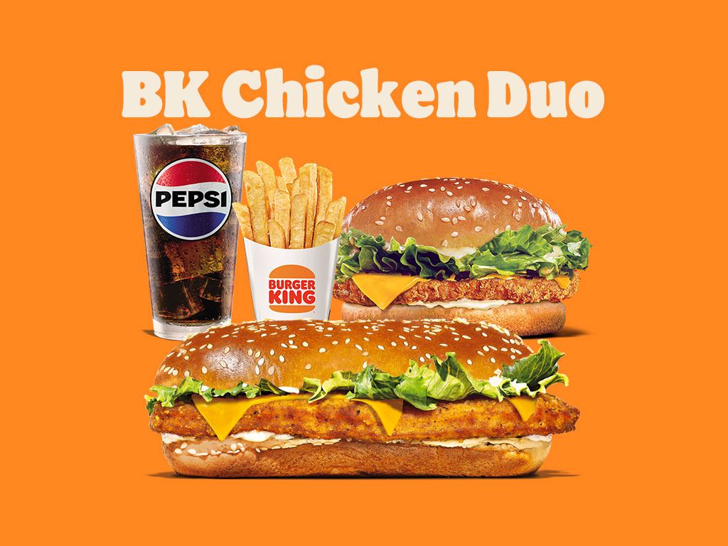 Disfruta de tus favoritos de pollo con 1 King de Pollo + 1 Crispy Chicken CON QUESO + 1 Papas regulares + 1 Refresco PET 400 ml.