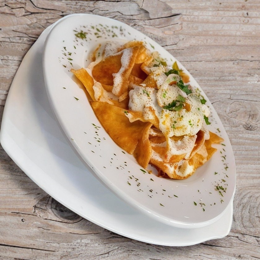 delicioso totopo frito acompañado con salsa verde, puedes agregar una proteína